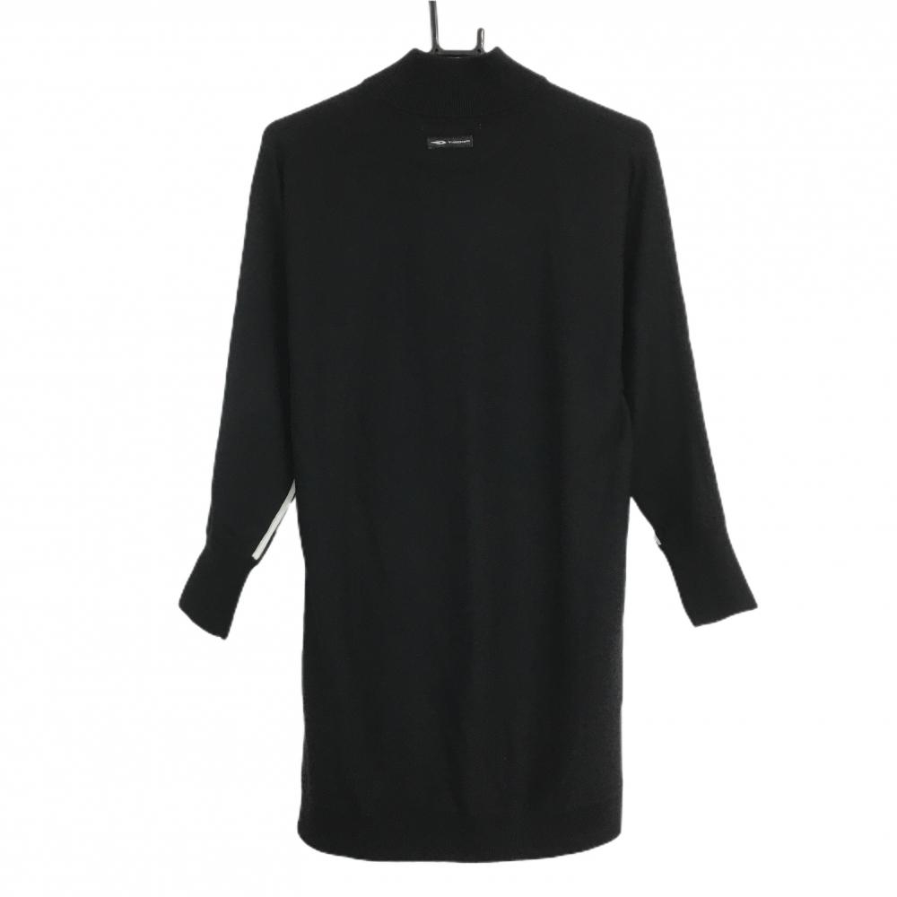【超美品】ティゴラ ハイネックニットワンピース 黒×白 ウール混 サイドスリット レディース S ゴルフウェア TIGORA