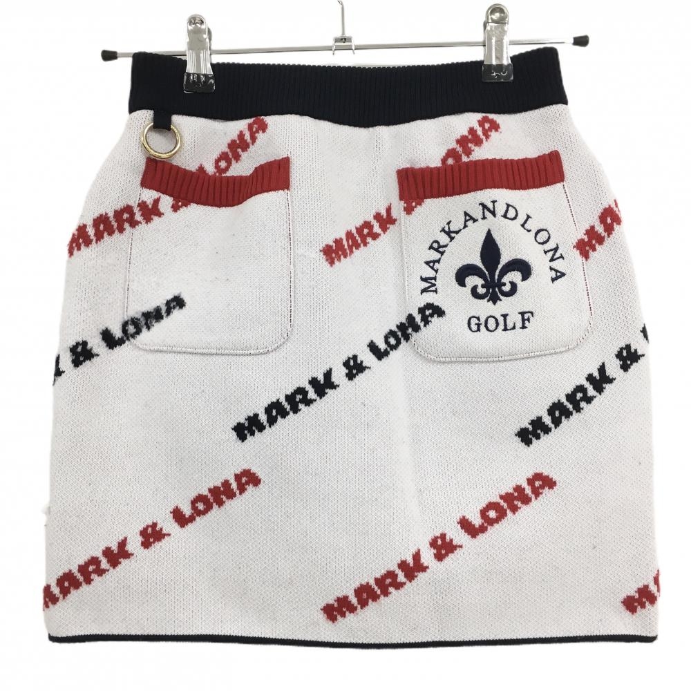 マークアンドロナ ニットスカート 白×レッド ロゴ総柄 ウール混 ウエストゴム 裏地付 レディース 36(S) ゴルフウェア MARK&LONA