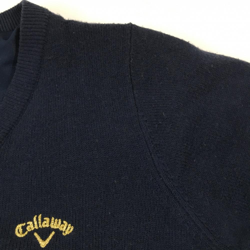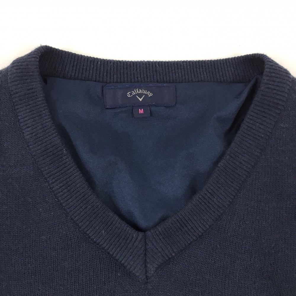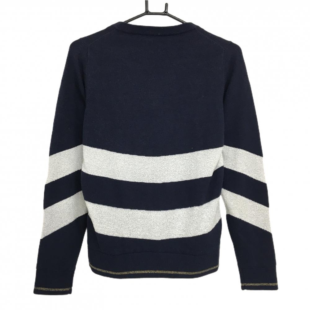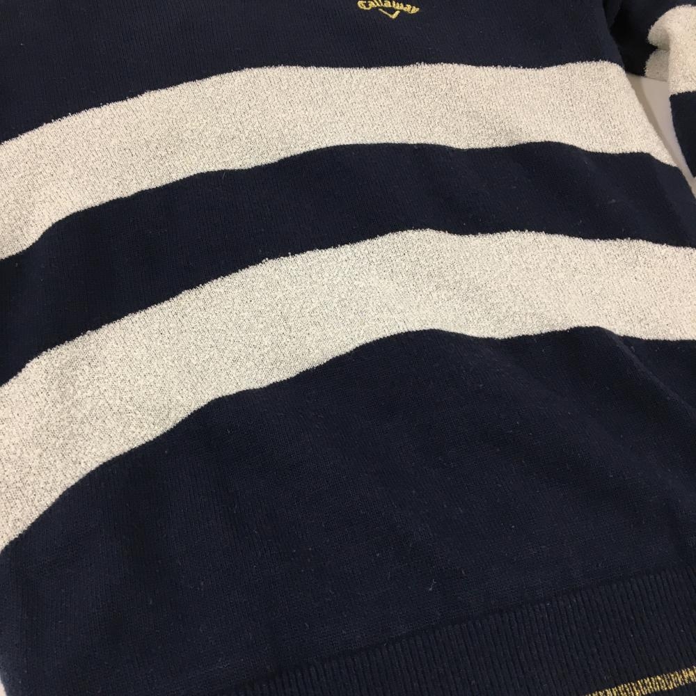 キャロウェイ セーター ネイビー×シルバー系 ボーダー風 ラメ ウール混 裏地付き ニット レディース M ゴルフウェア Callaway