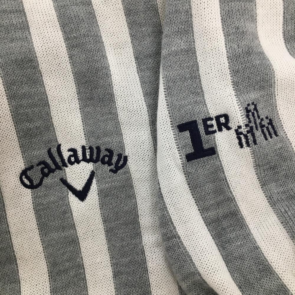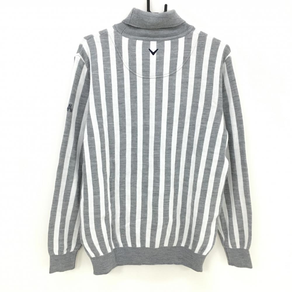 【美品】キャロウェイ タートルネックセーター グレー×白 ストライプ ニット メンズ LL ゴルフウェア Callaway