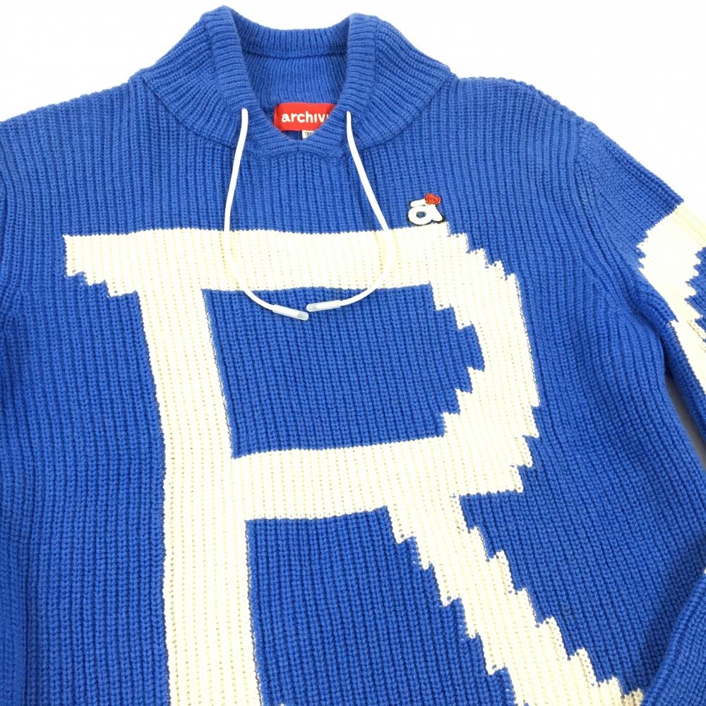 【超美品】アルチビオ セーター ブルー×白 ウール100% ニット レディース 36(S) ゴルフウェア archivio
