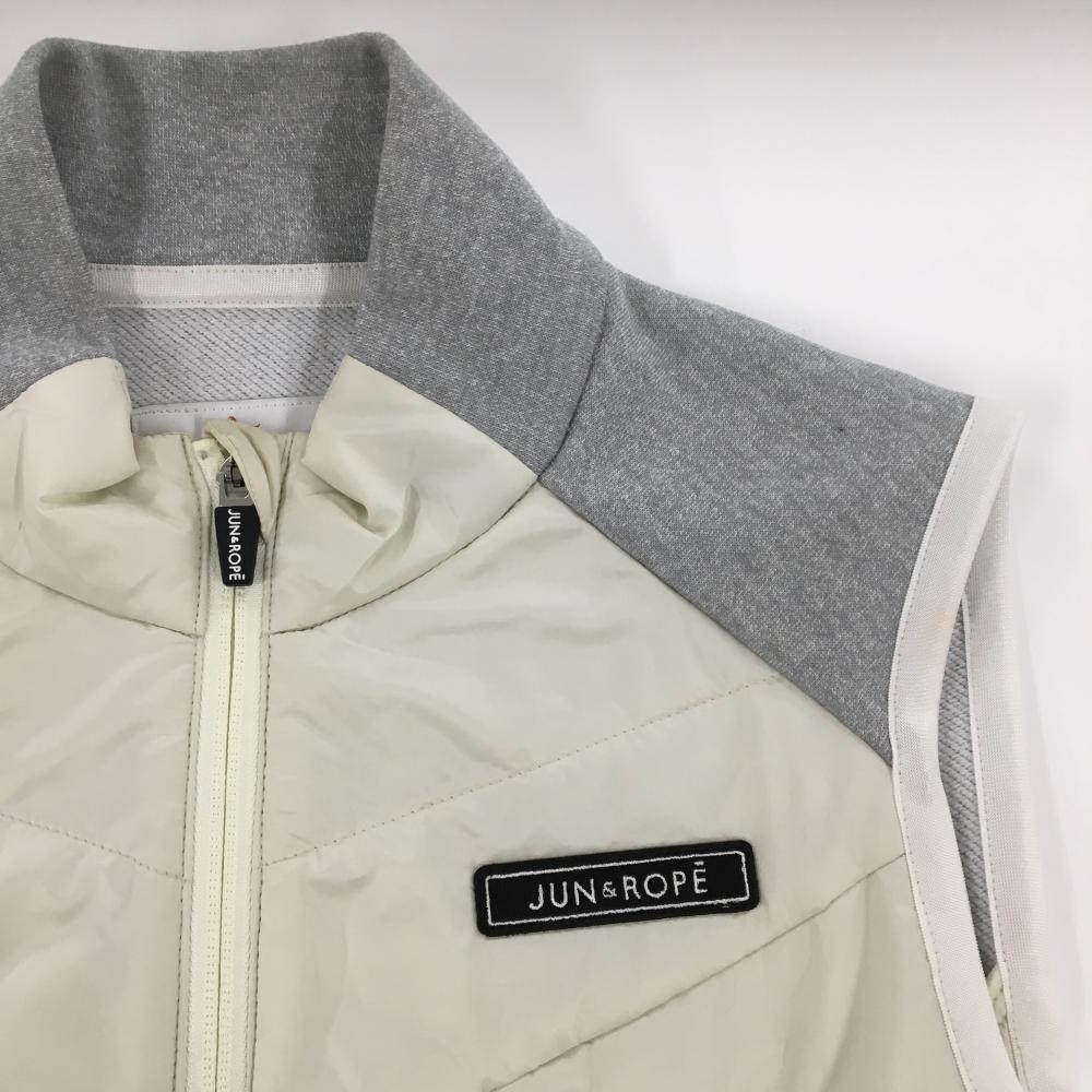 ジュンアンドロペ 切替中綿ベスト 白×グレー ロゴワッペン レディース L ゴルフウェア JUN&ROPE