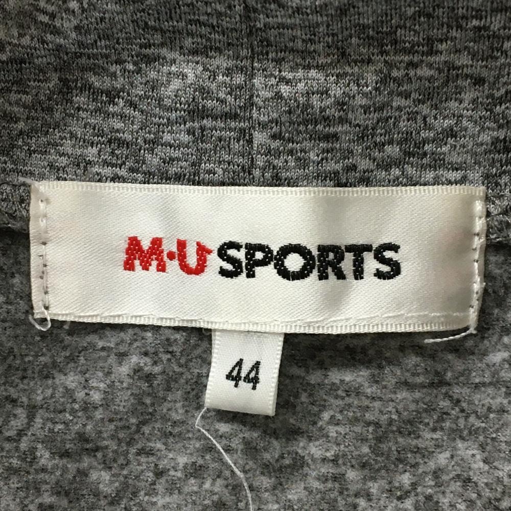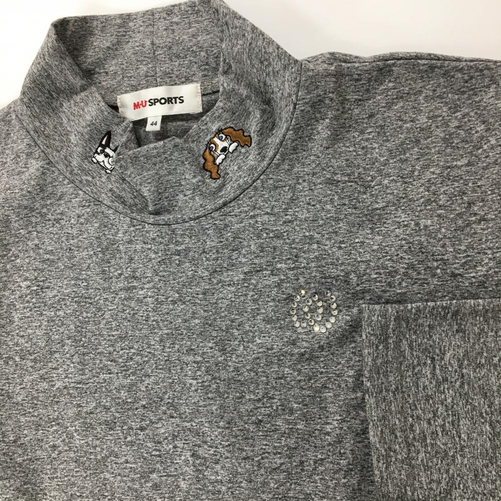 【美品】MUスポーツ 長袖ハイネックシャツ 杢グレー 裏起毛 犬刺しゅう ラインストーンロゴ レディース 44(XL) ゴルフウェア M・U SPORTS
