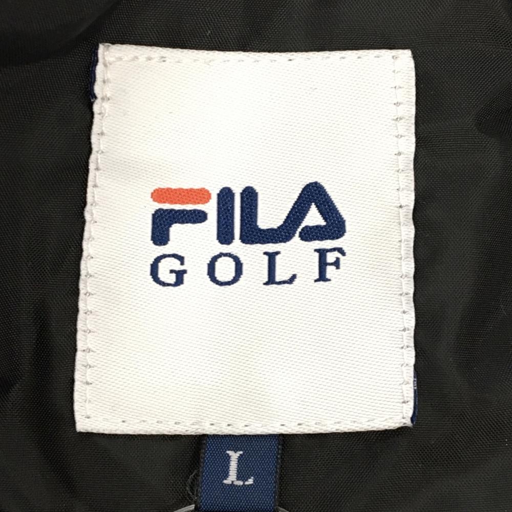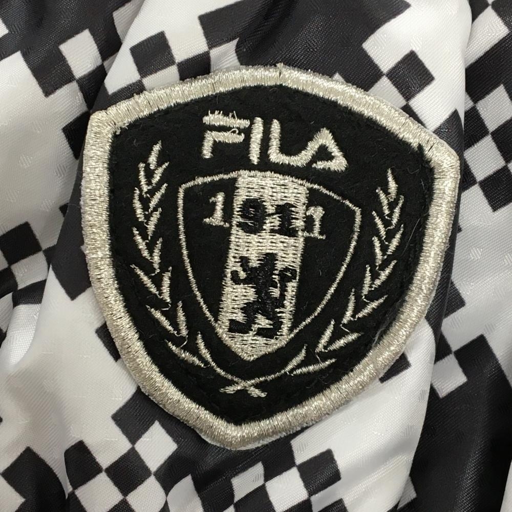【美品】フィラゴルフ 中綿ノースリーブワンピース 白×黒 総柄 襟裏ボア レディース L ゴルフウェア FILA GOLF