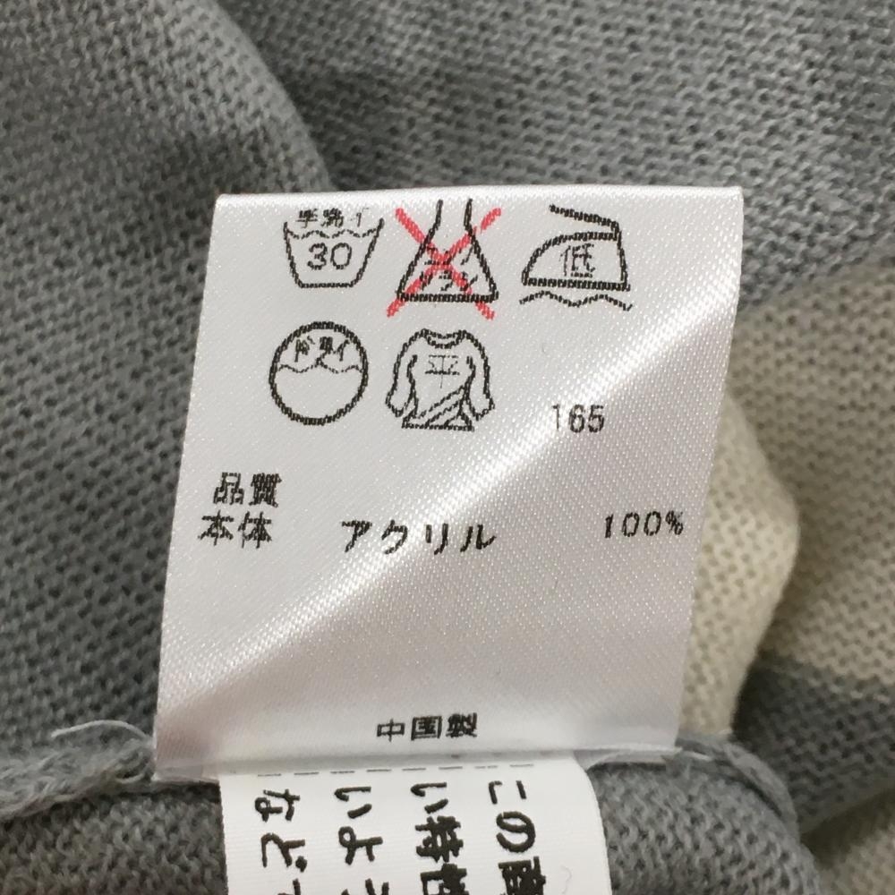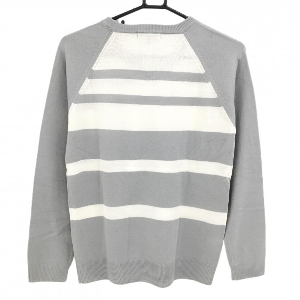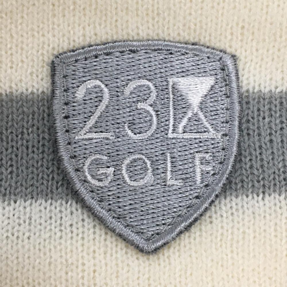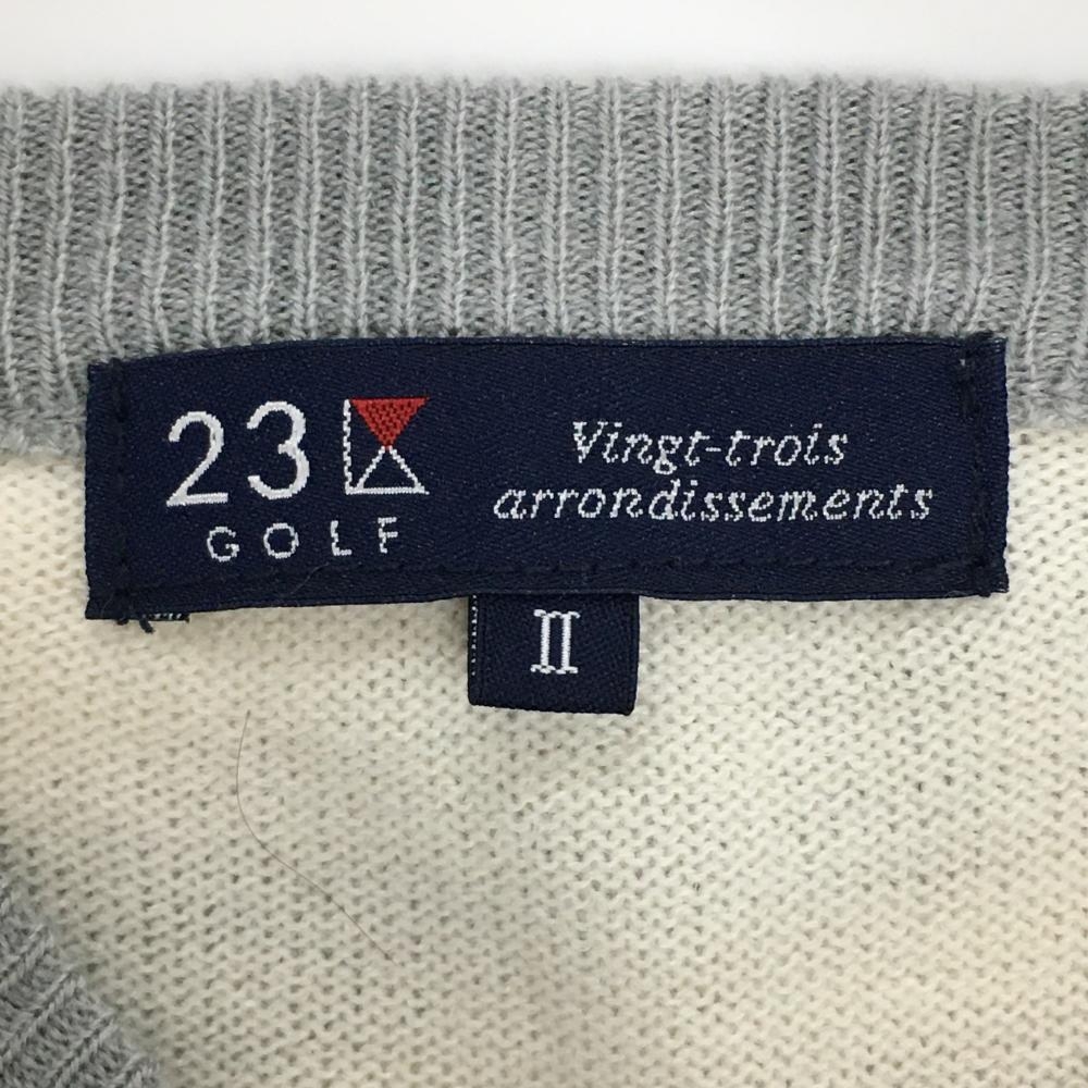 【超美品】23区ゴルフ セーター グレー×白 身頃ランダムボーダー ニット 薄手 Vネック アクリル100% レディース II(L) ゴルフウェア 23区