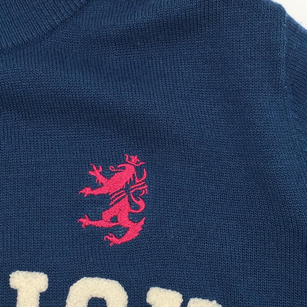 アドミラル ハイネックセーター ブルー×白 ニット ウール混 パイル地刺しゅう レディース L ゴルフウェア Admiral