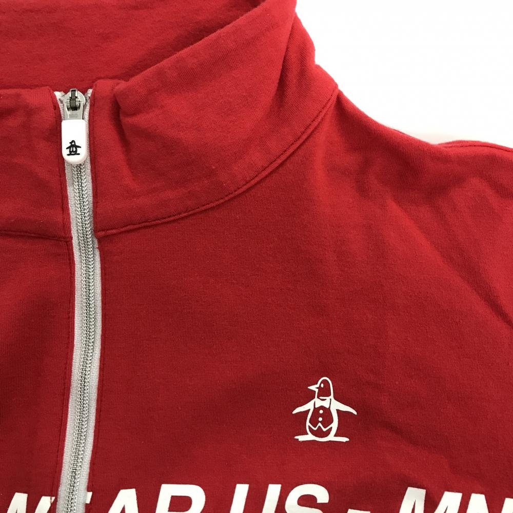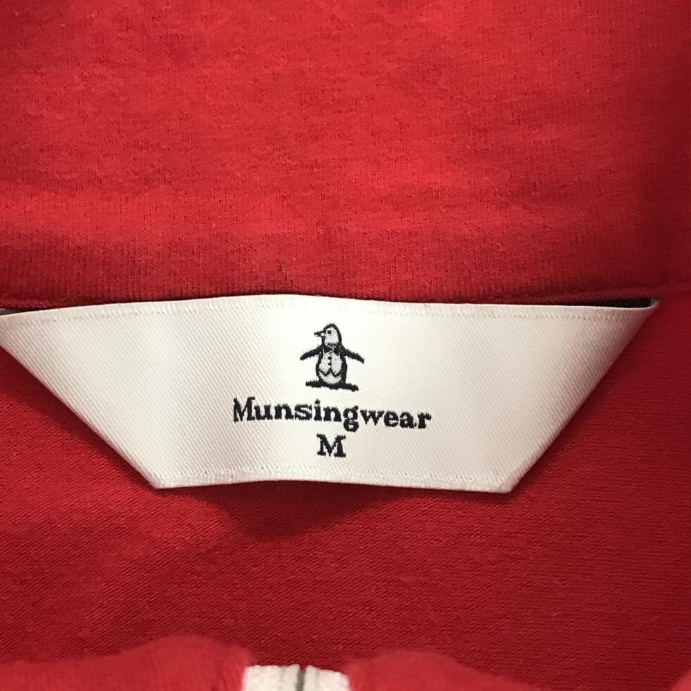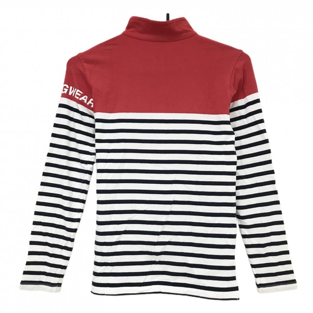 【美品】マンシングウェア 長袖ハイネックシャツ レッド×白×ネイビー ハーフジップ 一部ボーダー レディース M ゴルフウェア Munsingwear