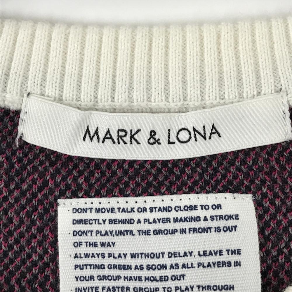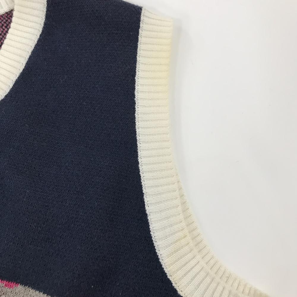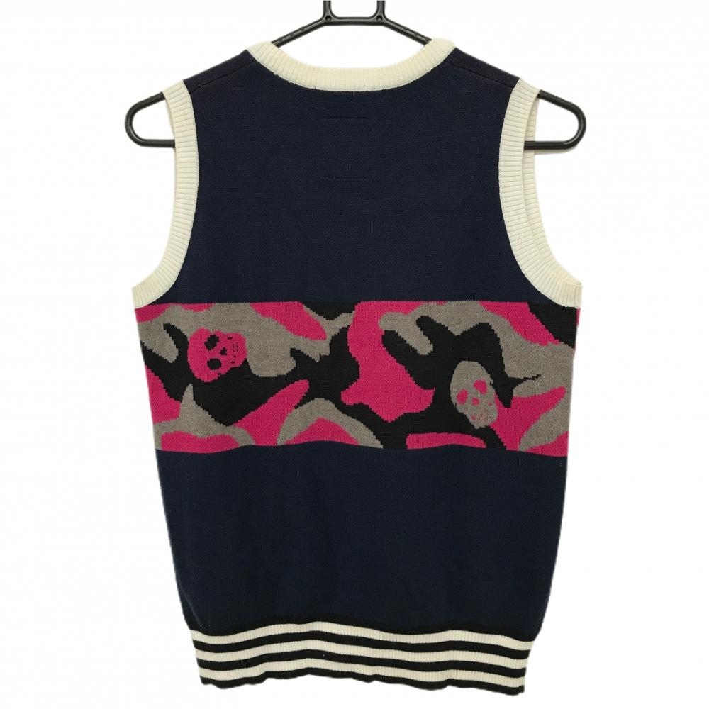 マークアンドロナ ニットベスト ネイビー×ピンク×黒 一部迷彩 カモフラ Vネック レディース WM ゴルフウェア MARK&LONA