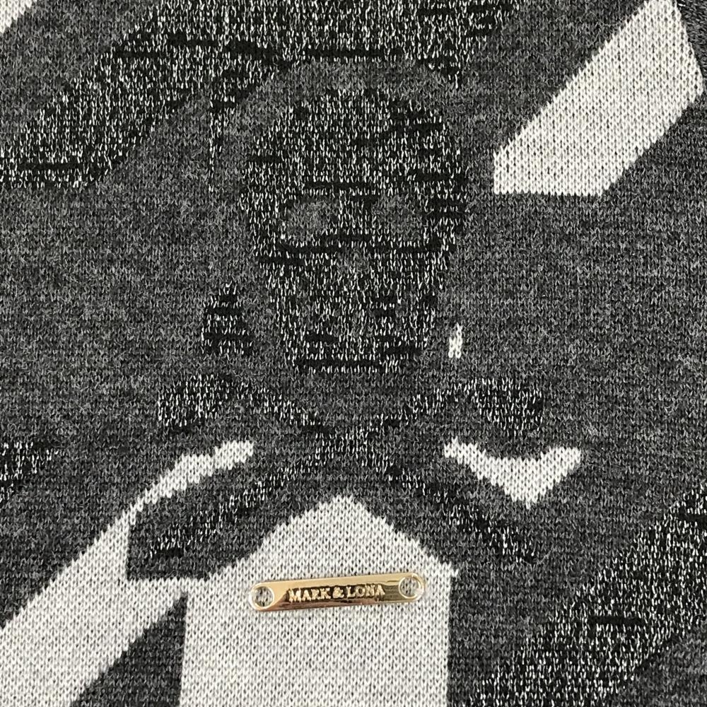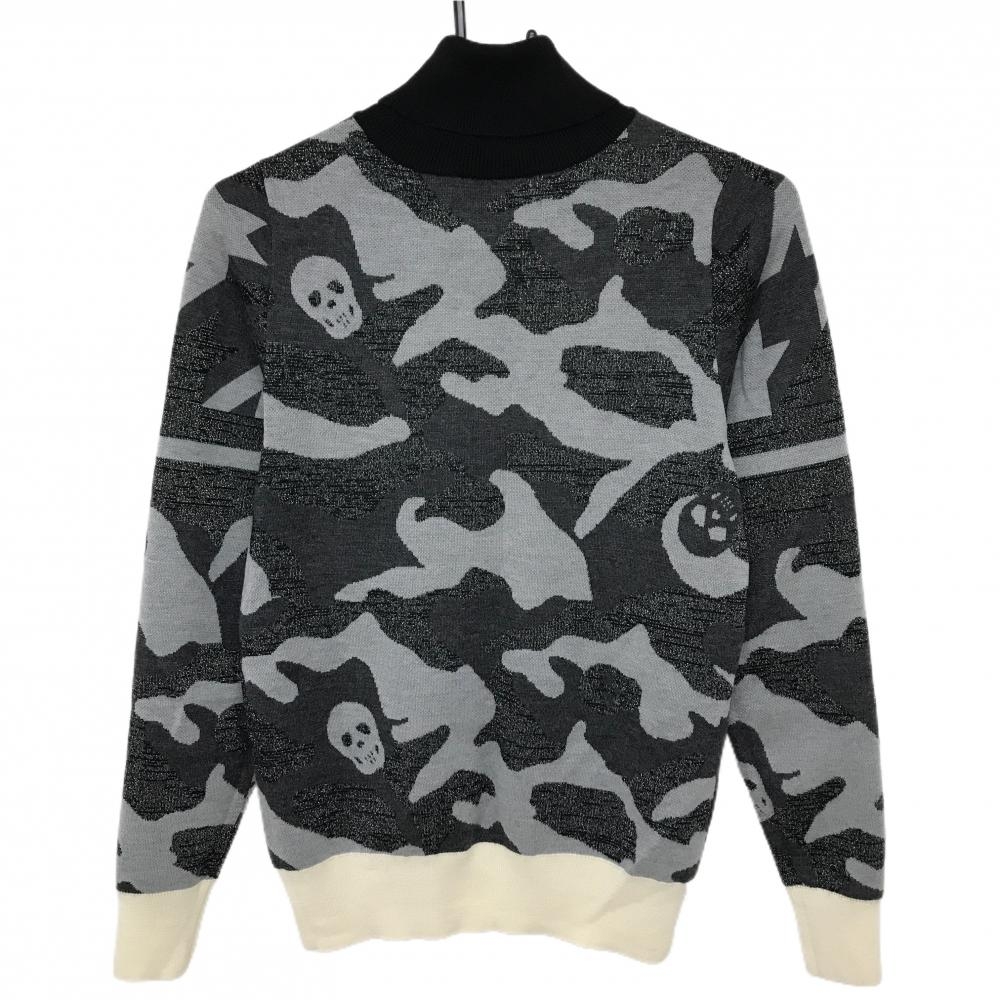 【超美品】マークアンドロナ タートルネックセーター グレー×白 千鳥格子 ニット ウール混 スカル レディース M ゴルフウェア MARK&LONA