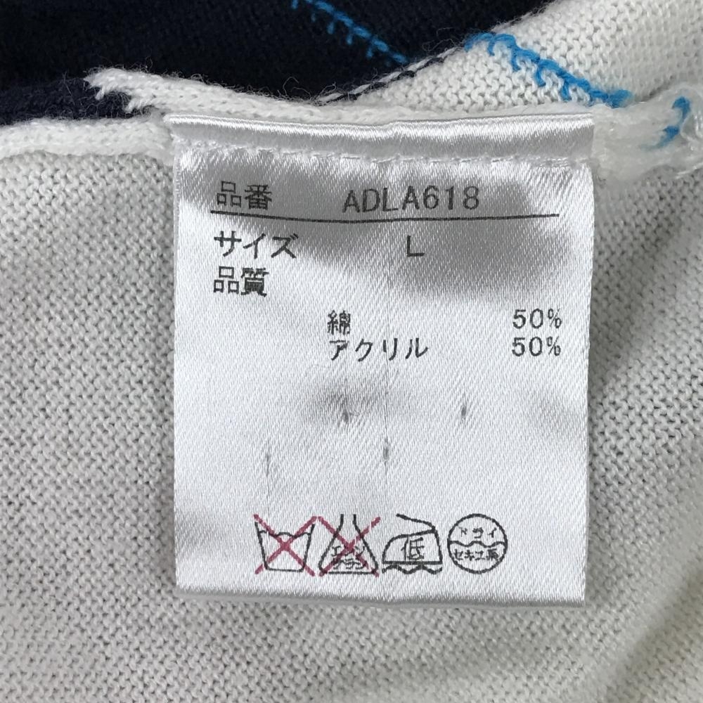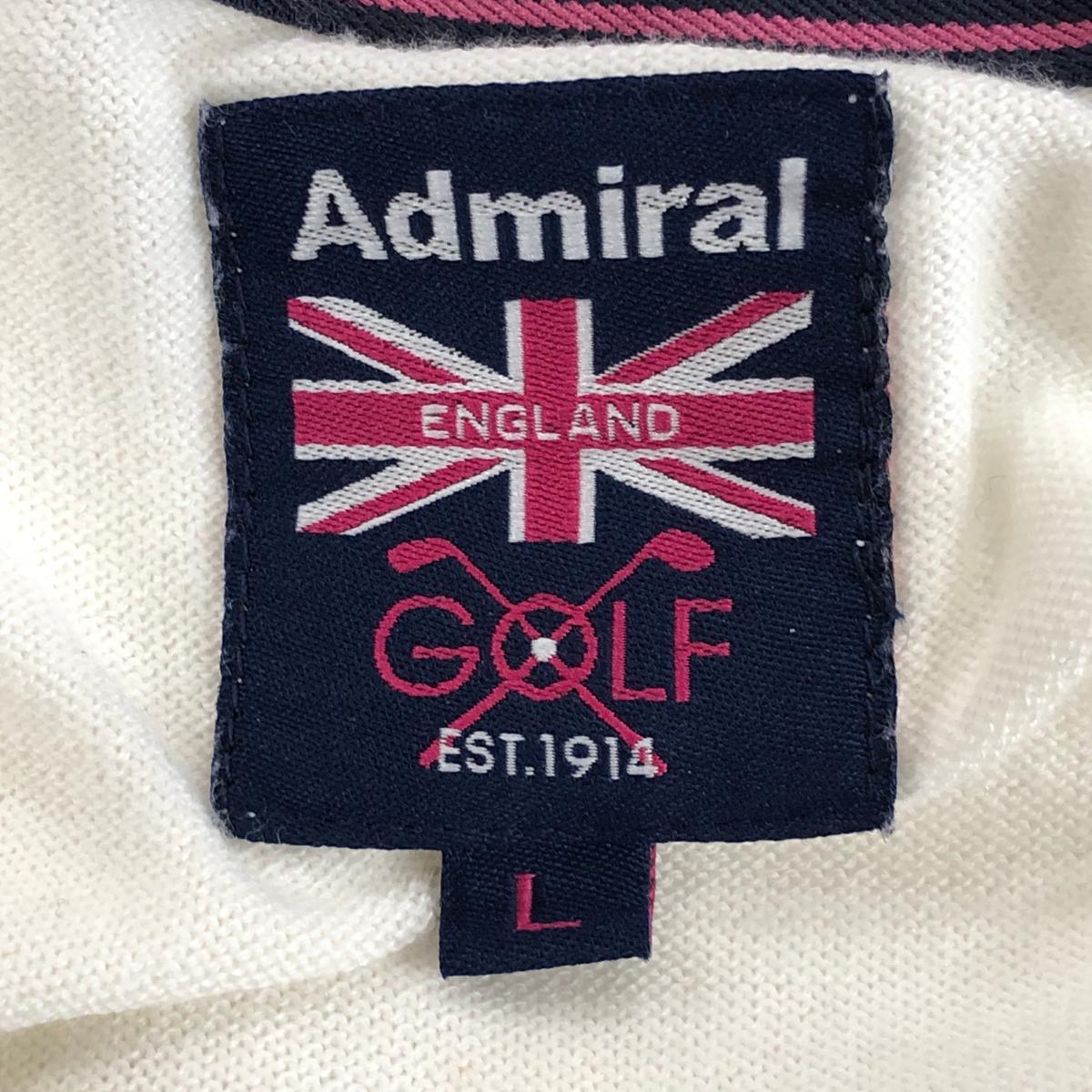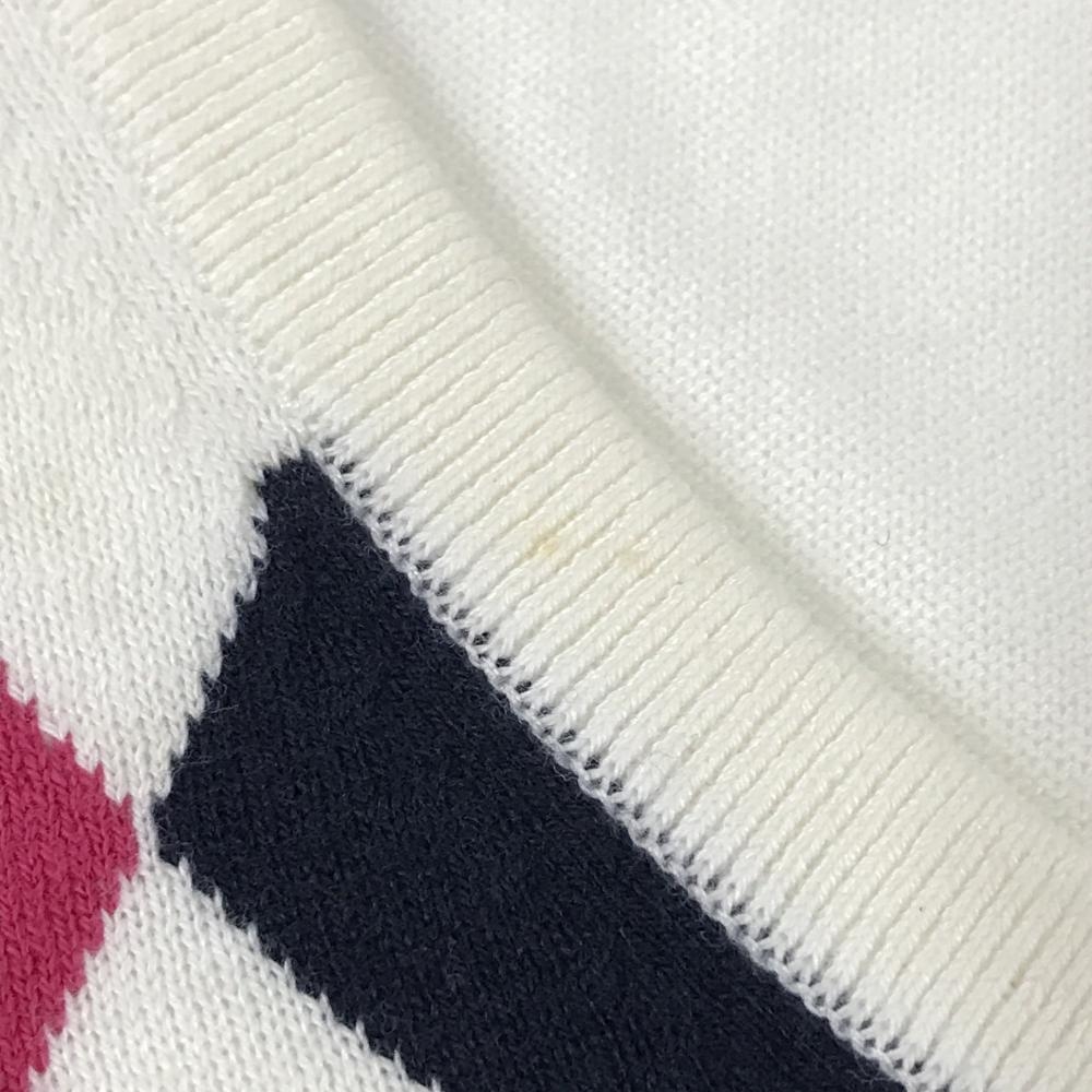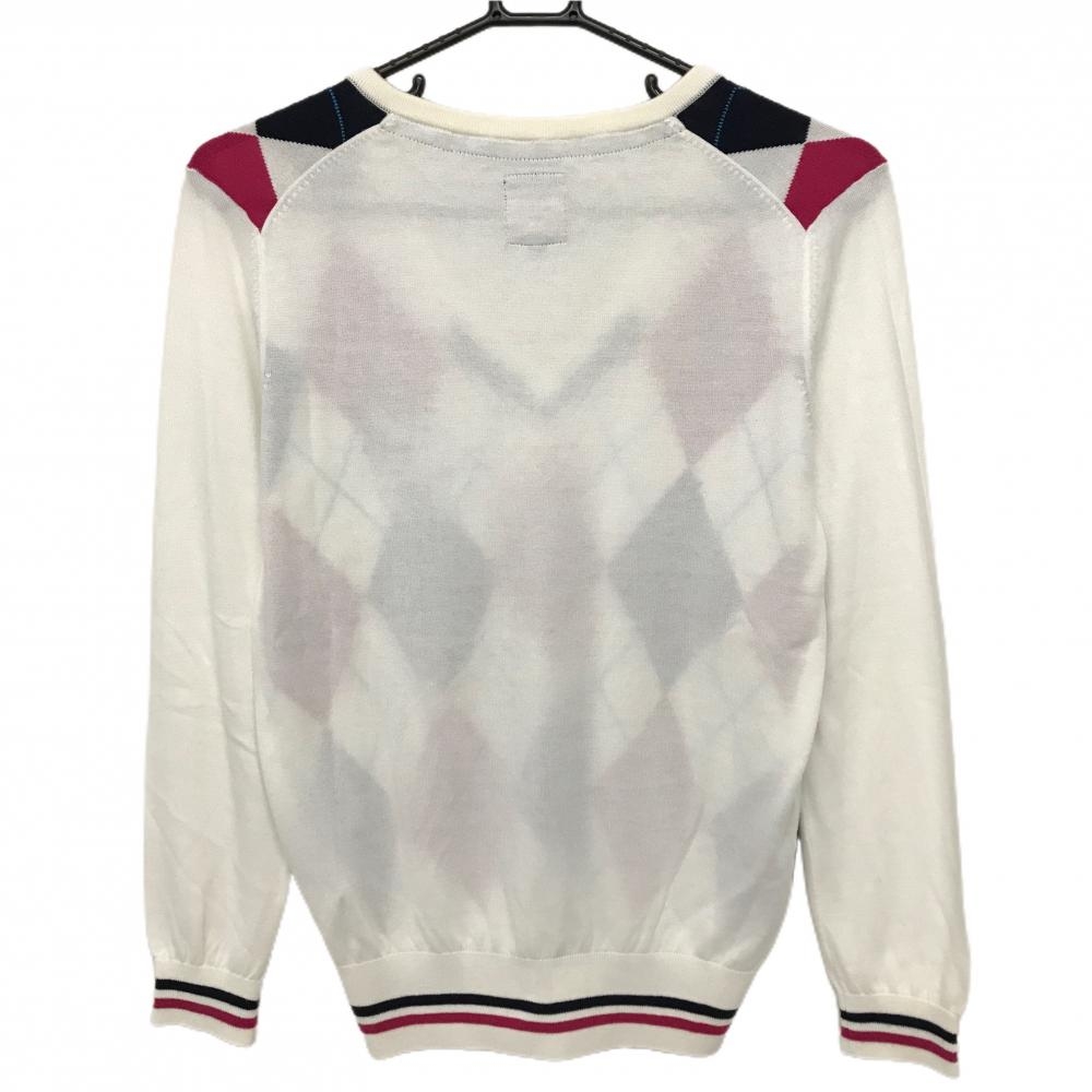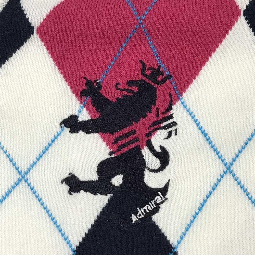 【美品】アドミラル セーター 白×ピンク アーガイル柄 ロゴ刺しゅう ニット 薄手 アクリル混 レディース L ゴルフウェア Admiral