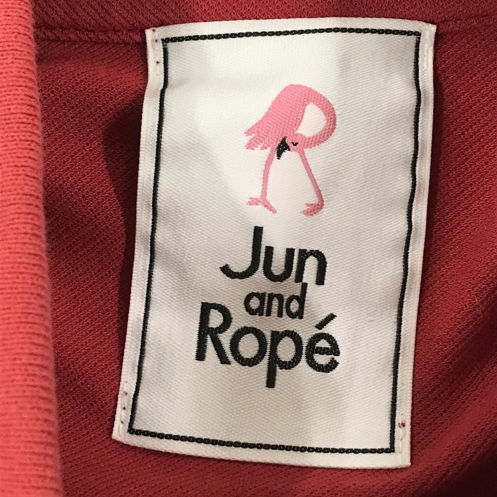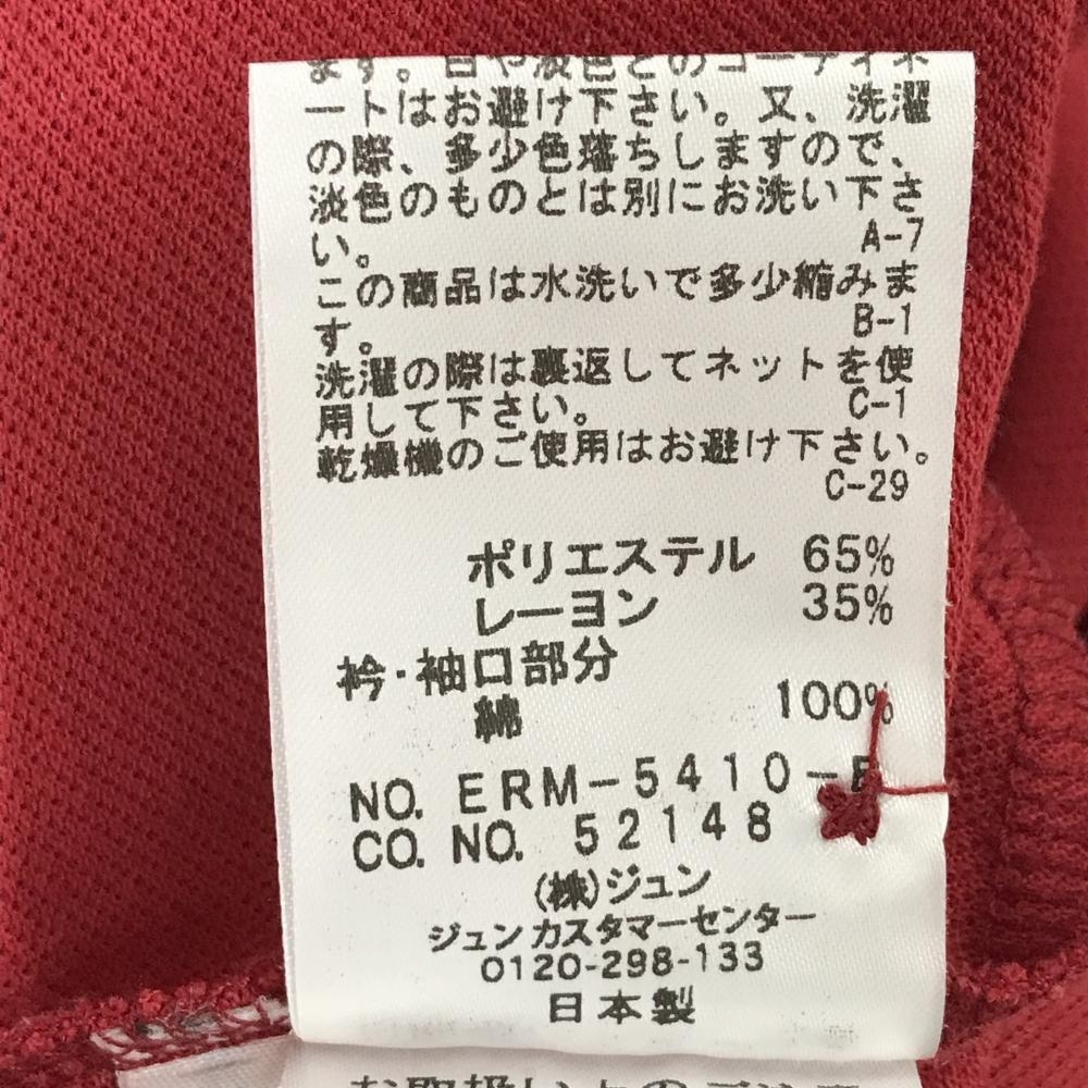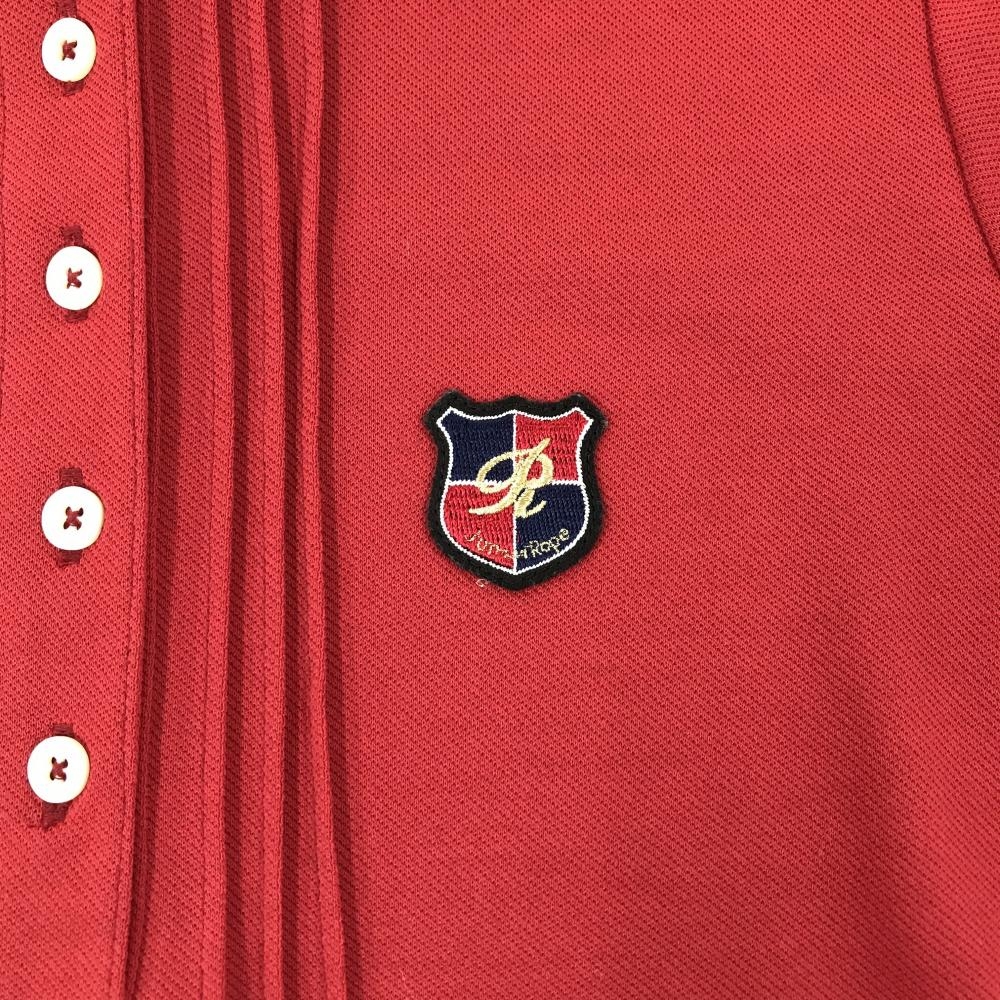 ジュンアンドロペ 長袖ポロシャツ レッド 胸元ワッペン ロゴボタン レディース M ゴルフウェア JUN&ROPE