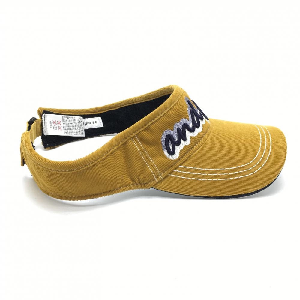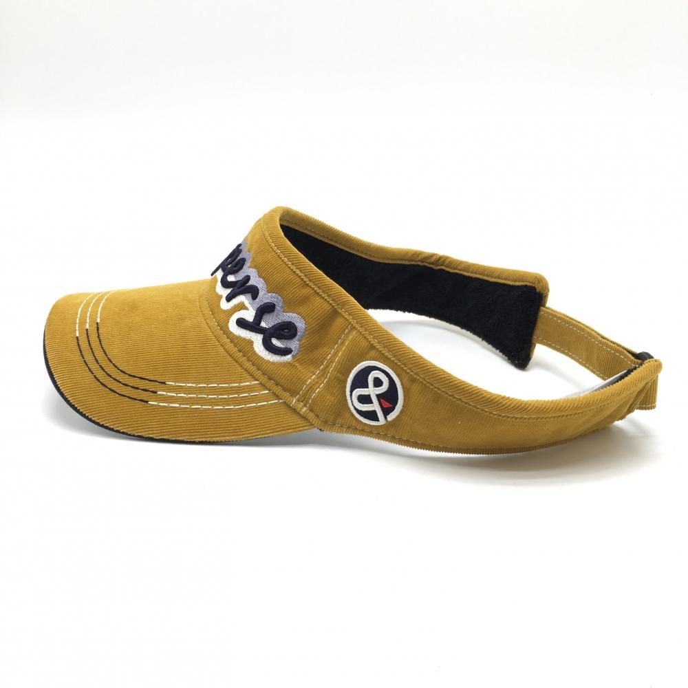 アンパスィ サンバイザー マスタードイエロー×ネイビー コーデュロイ ロゴ刺しゅう F ゴルフウェア and per se