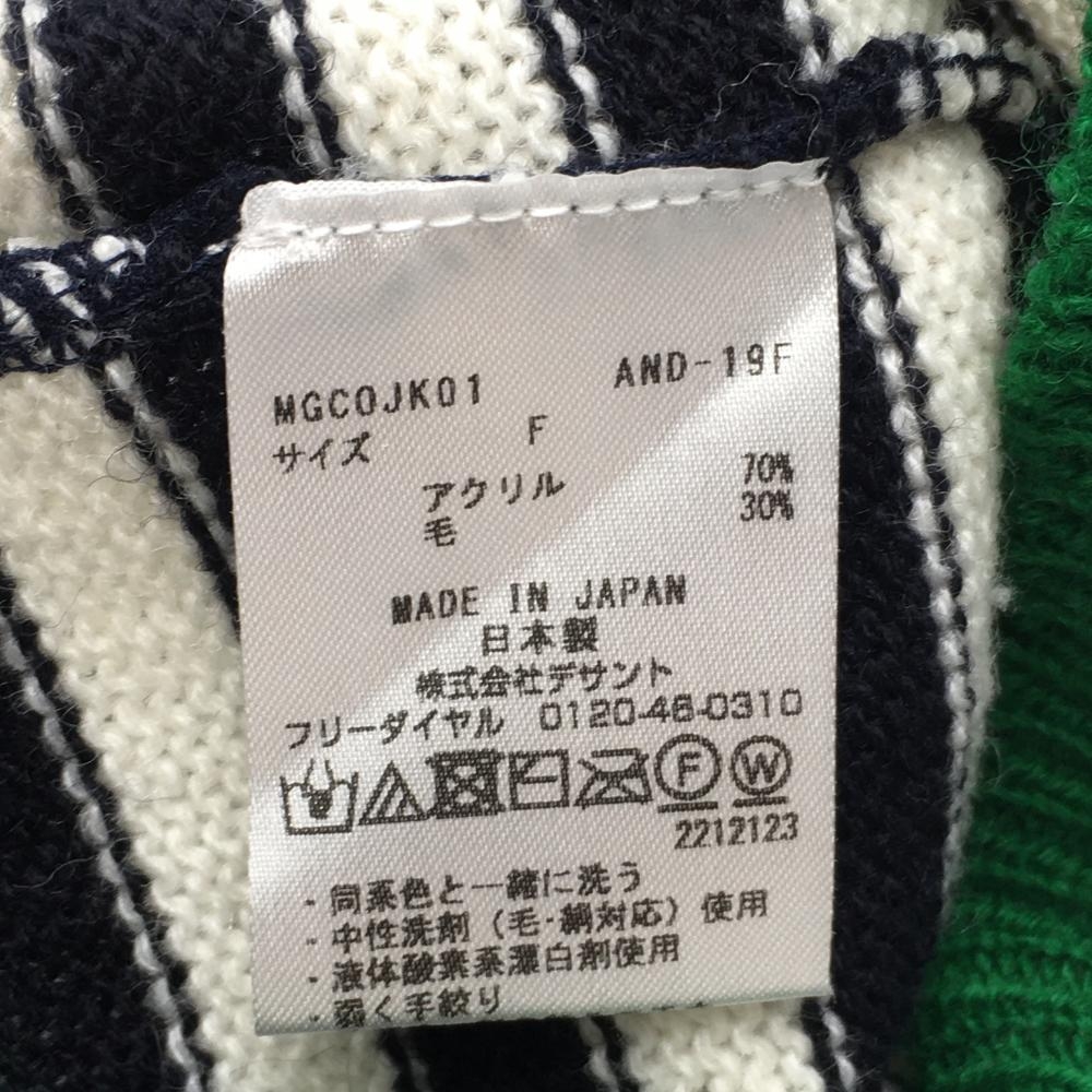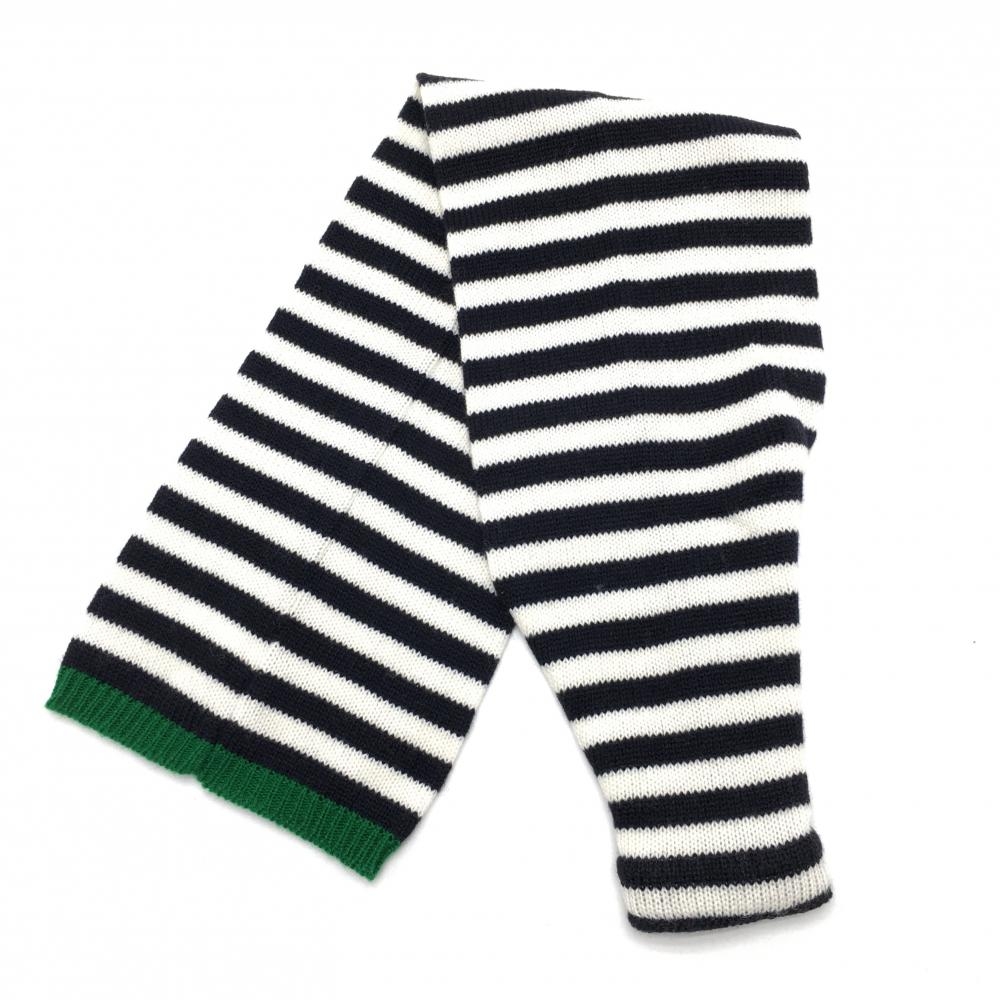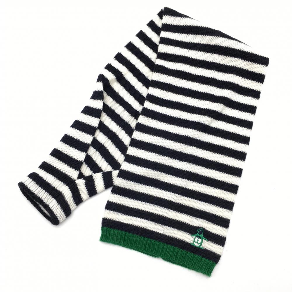 【超美品】マンシングウェア マフラー 白×黒 ボーダー ウール混 ネックウォーマー F ゴルフウェア Munsingwear