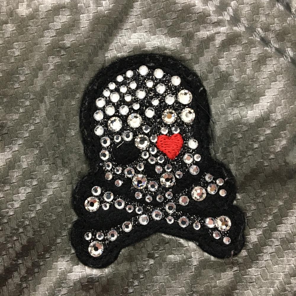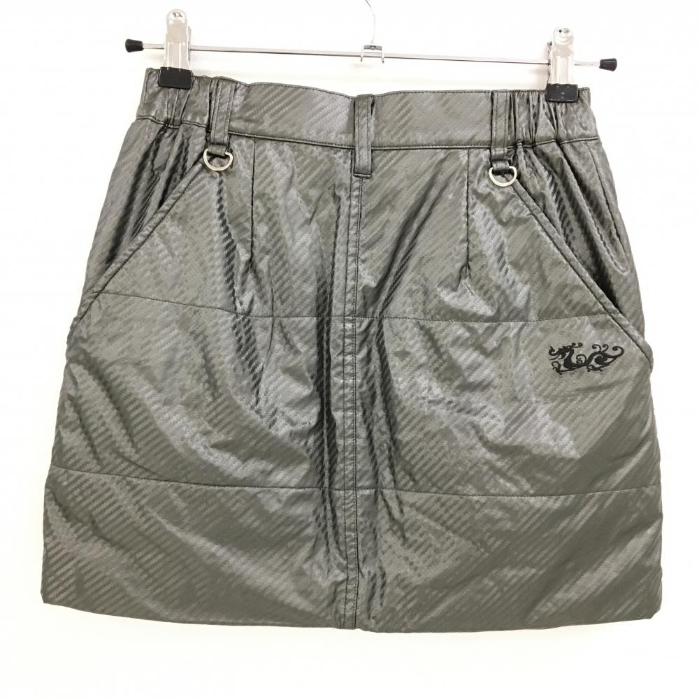 【美品】ダンスウィズドラゴン 中綿スカート シルバー 地模様総柄 スカル レディース 1(S) ゴルフウェア Dance With Dragon