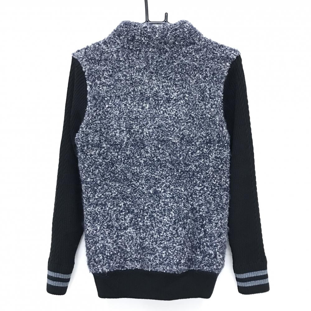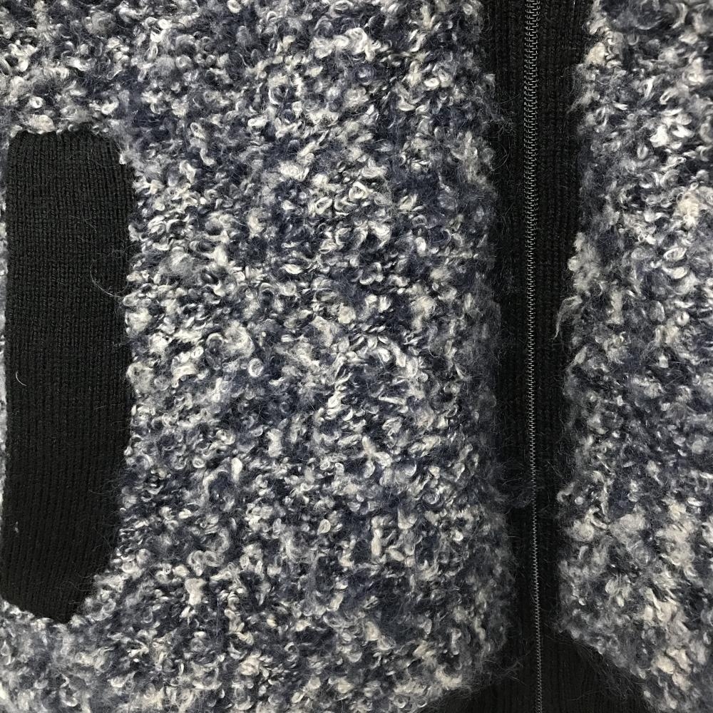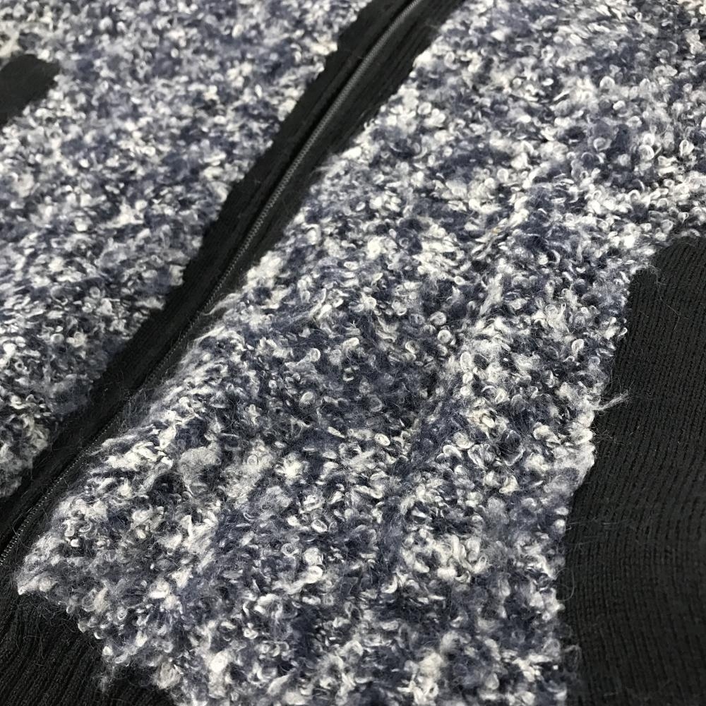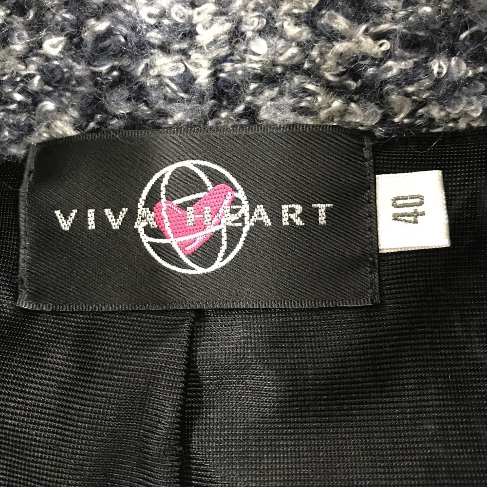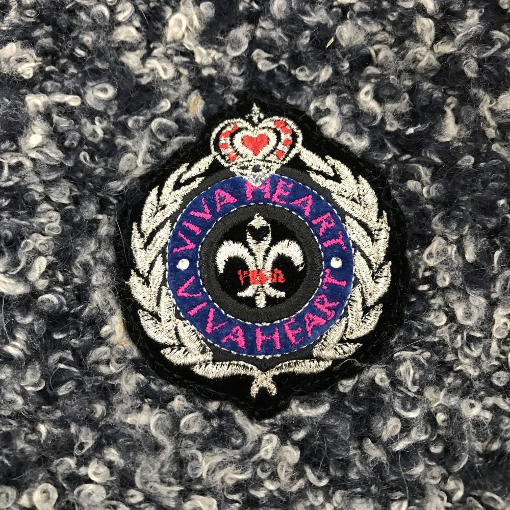 ビバハート ニットジャケット ネイビー×黒 ボア風 胸元ワッペン ウール混 レディース 40(M) ゴルフウェア VIVA HEART
