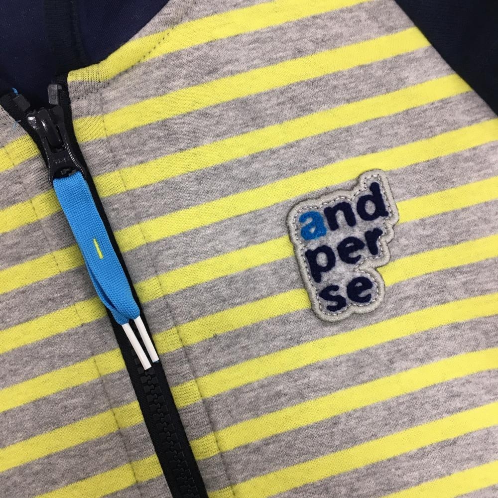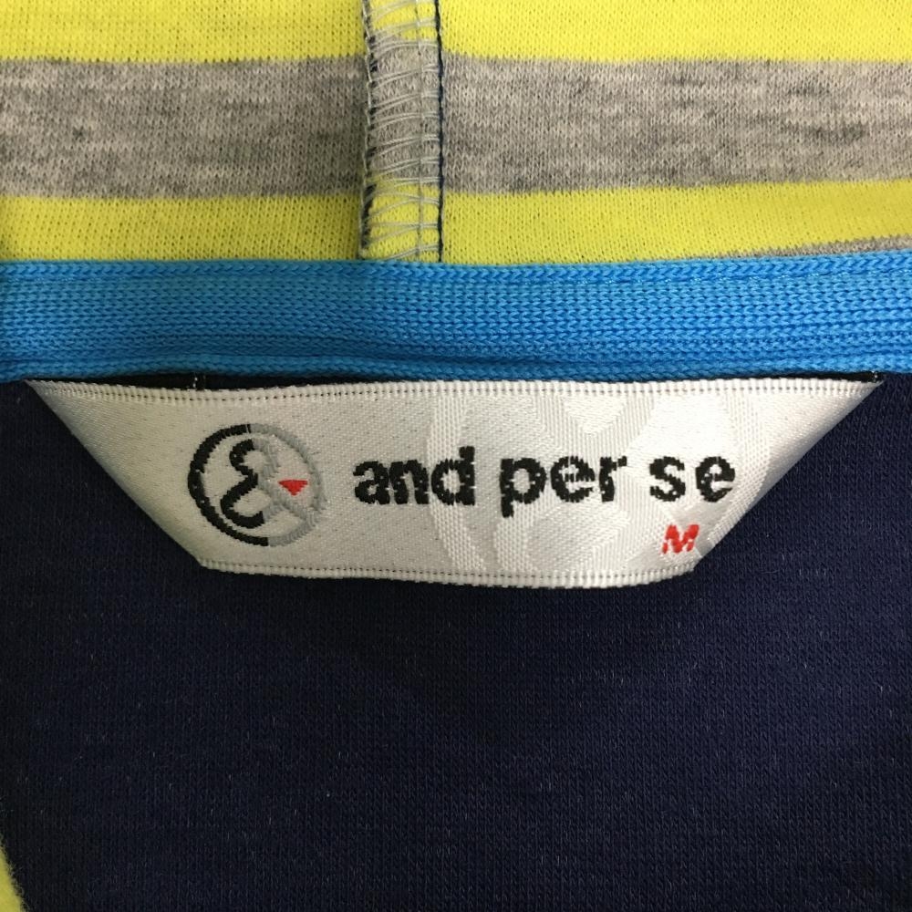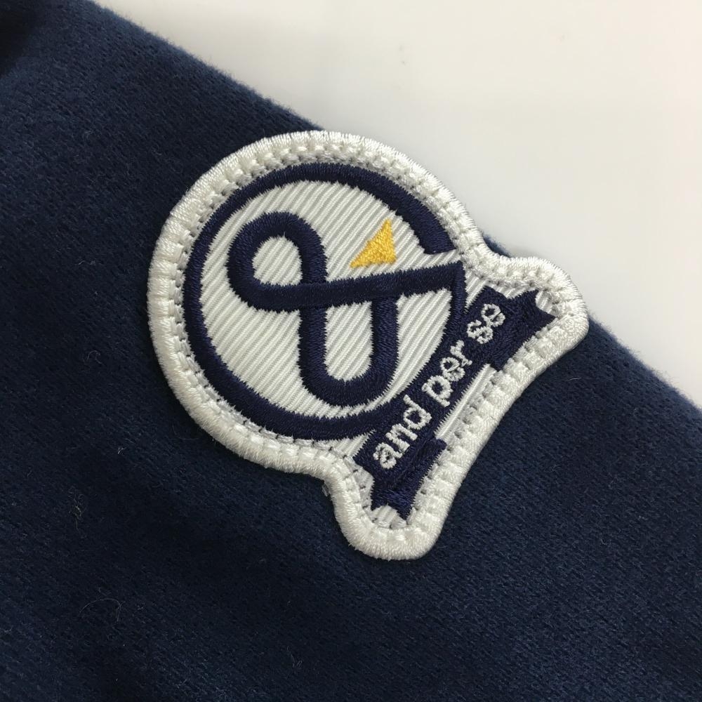 アンパスィ ジップパーカー ネイビー×杢グレー イエローボーダー ロゴワッペン レディース M ゴルフウェア and per se