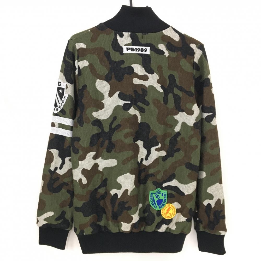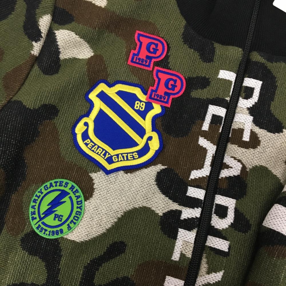 【新品】パーリーゲイツ ニットジャケット カーキ×黒 カモフラ柄 迷彩 裏地付 ウール混 メンズ 4(M) ゴルフウェア PEARLY GATES