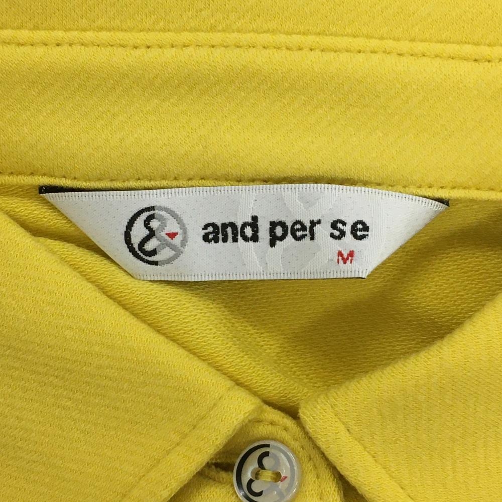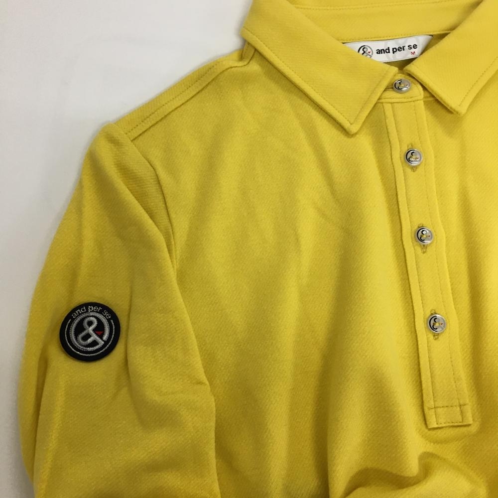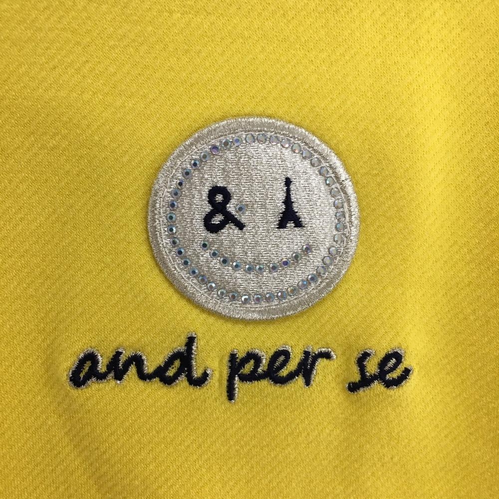 【超美品】アンパスィ 長袖ポロシャツ イエロー 胸元ワッペン ラインストーン レディース M ゴルフウェア and per se