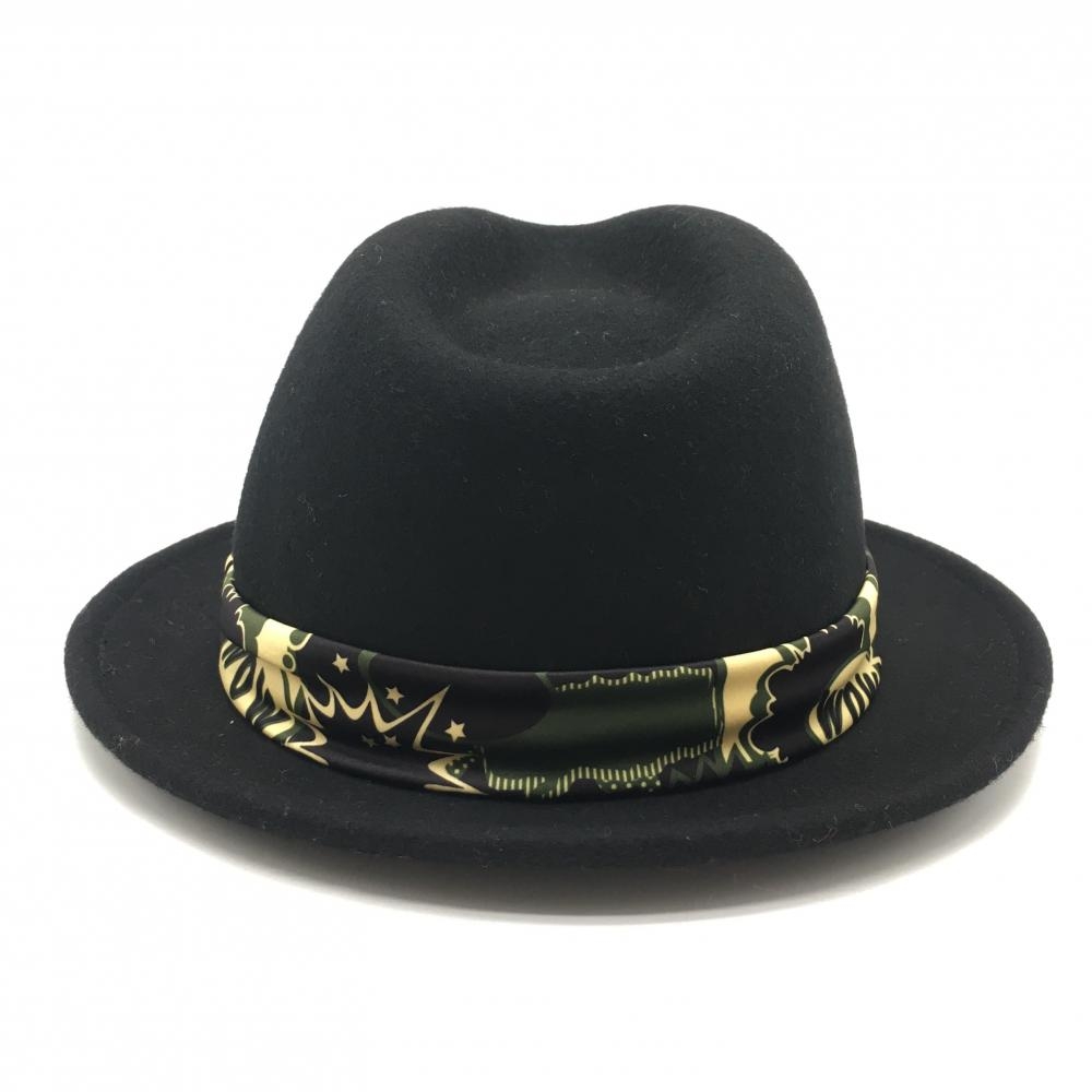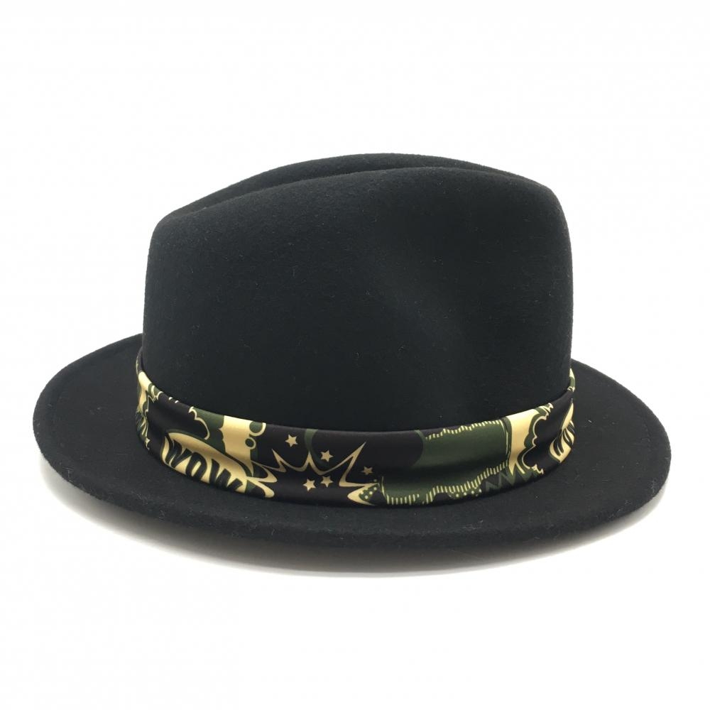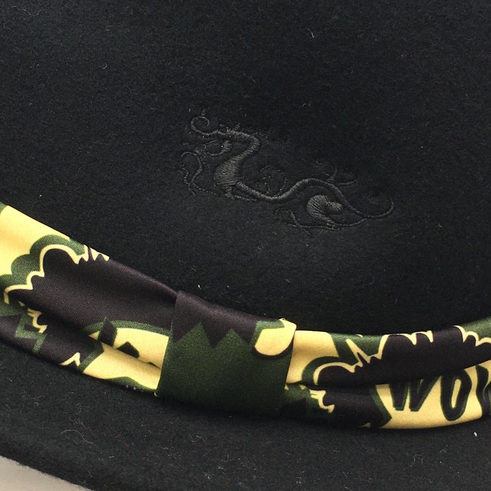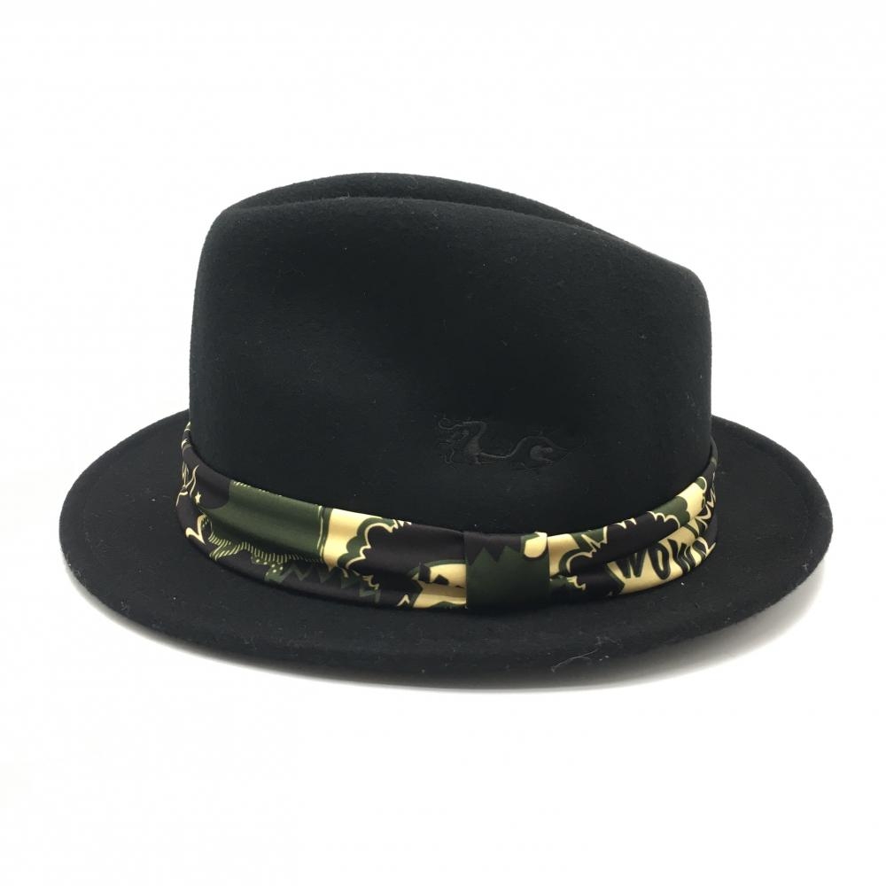 【超美品】ダンスウィズドラゴン 中折れハット 黒 一部カモフラ調 ウール100% フリーサイズ ゴルフウェア Dance With Dragon