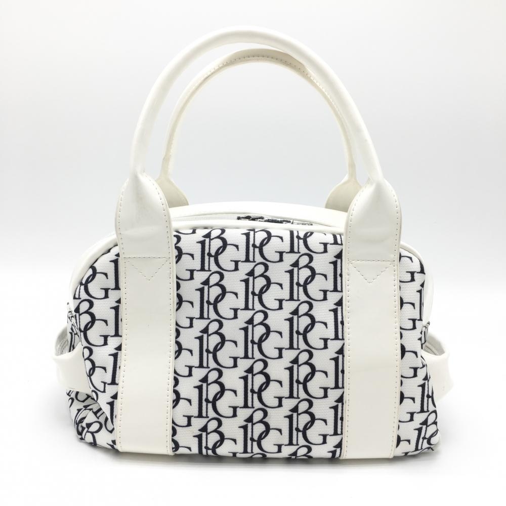 ウノピゥウノウグァーレトレ カートバッグ 白×黒 ロゴ総柄 内外ポケットゴルフ 1PIU1UGUALE3