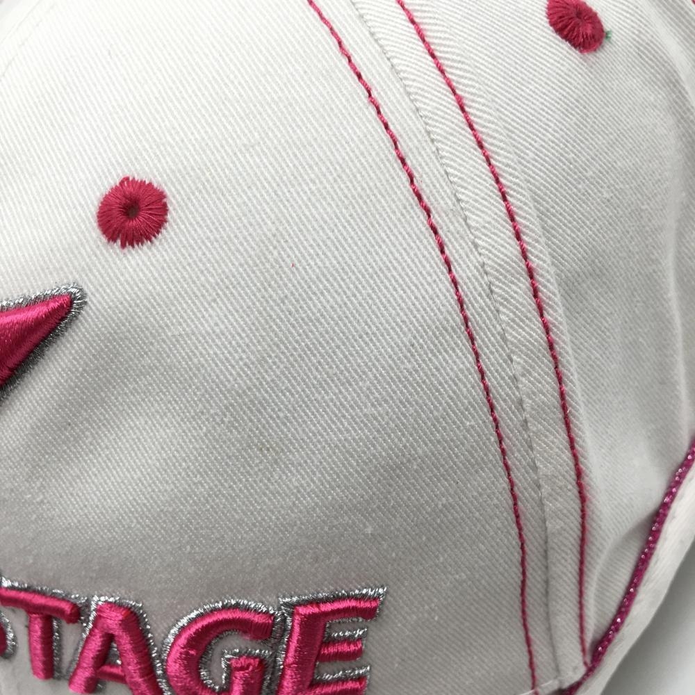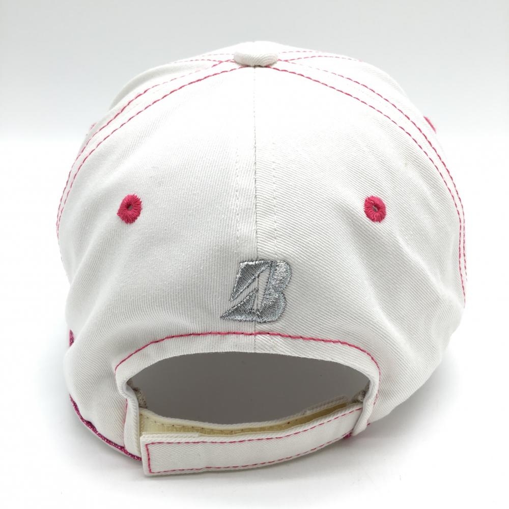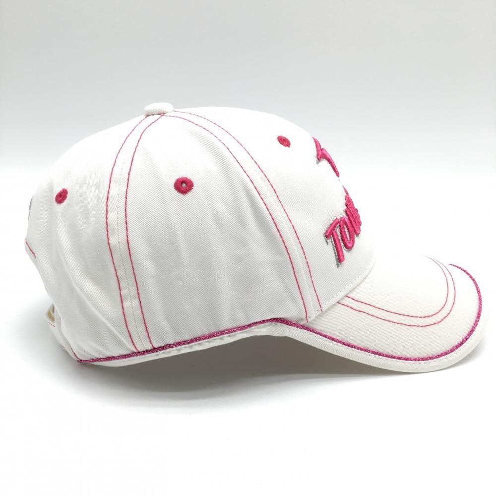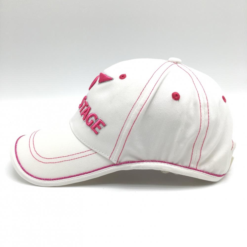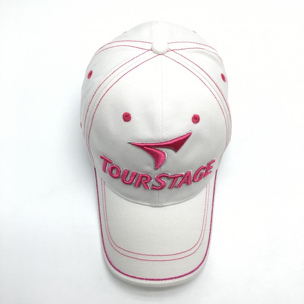 【美品】ツアーステージ キャップ 白×ピンク ロゴ刺しゅう フリーサイズ(約55-58cm) ゴルフウェア TOURSTAGE