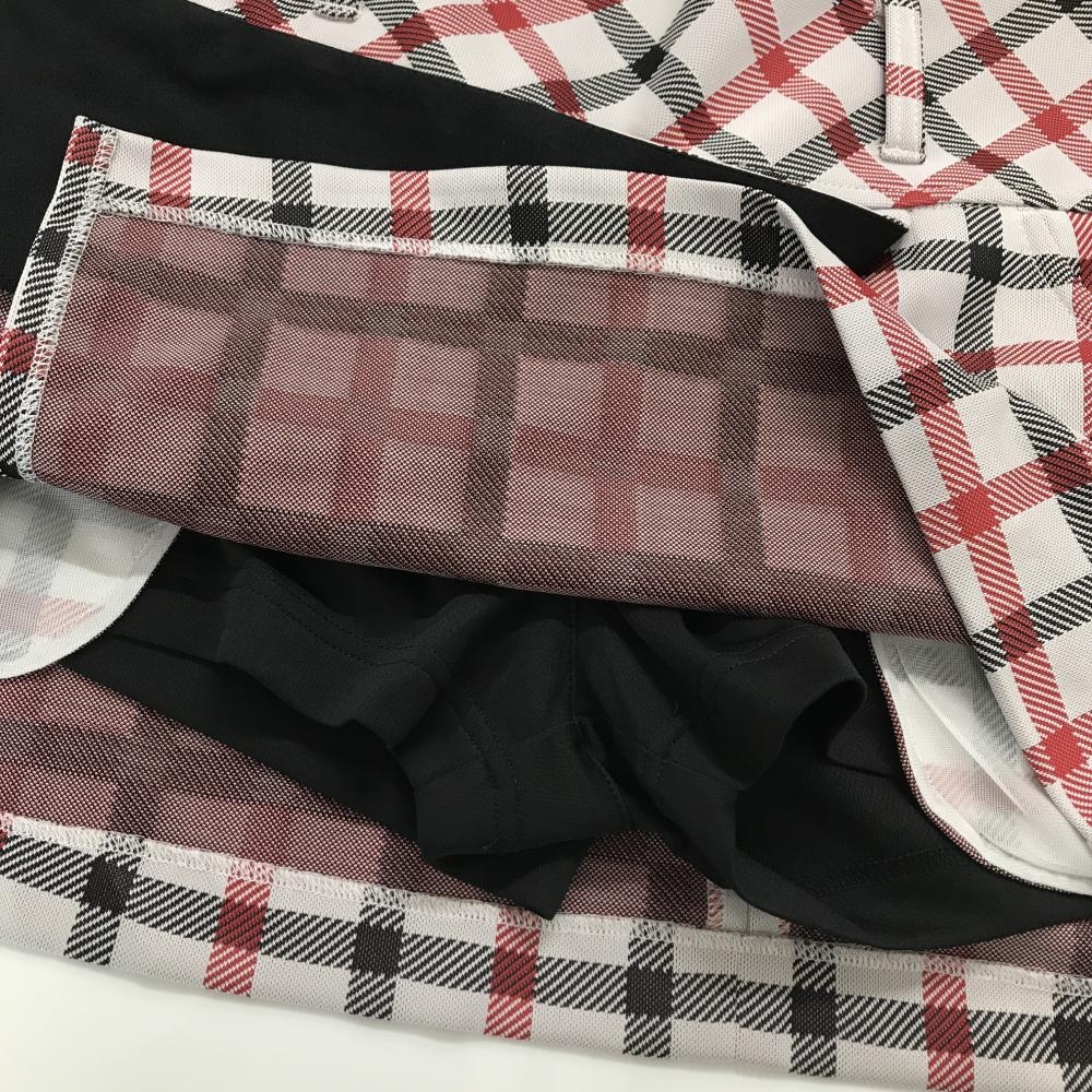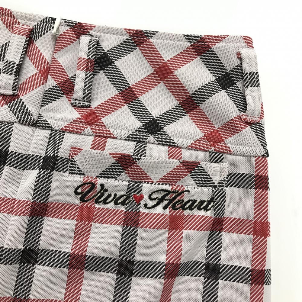 【超美品】ビバハート スカート 白×レッド チェック柄 ロゴ刺しゅう 内側インナーパンツ レディース 40(M) ゴルフウェア VIVA HEART