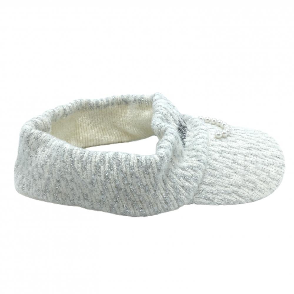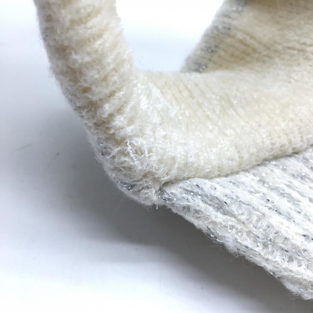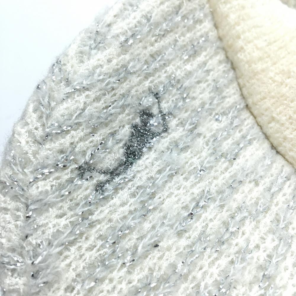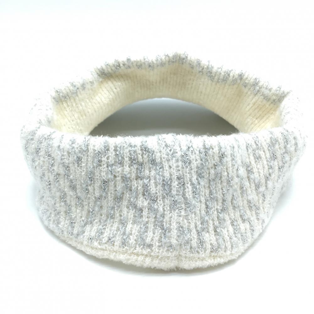 【超美品】マークアンドロナ ニットサンバイザー 白×グレー 総柄 ウール混 パールチャーム付 レディース FREE ゴルフウェア MARK&LONA