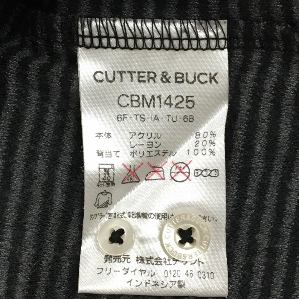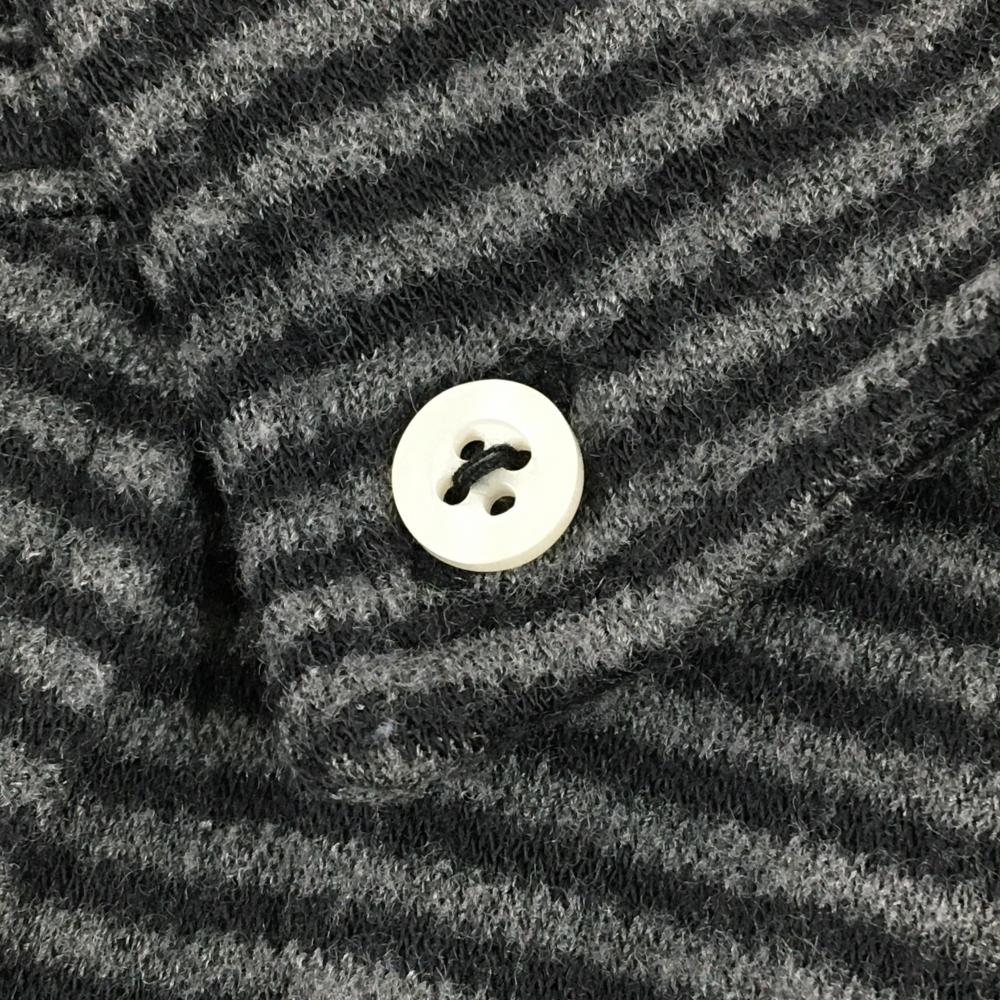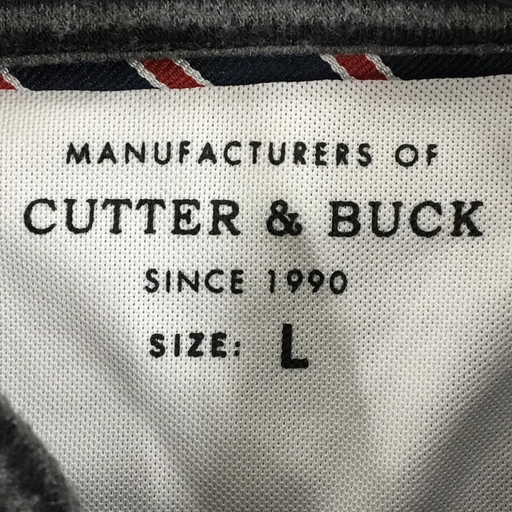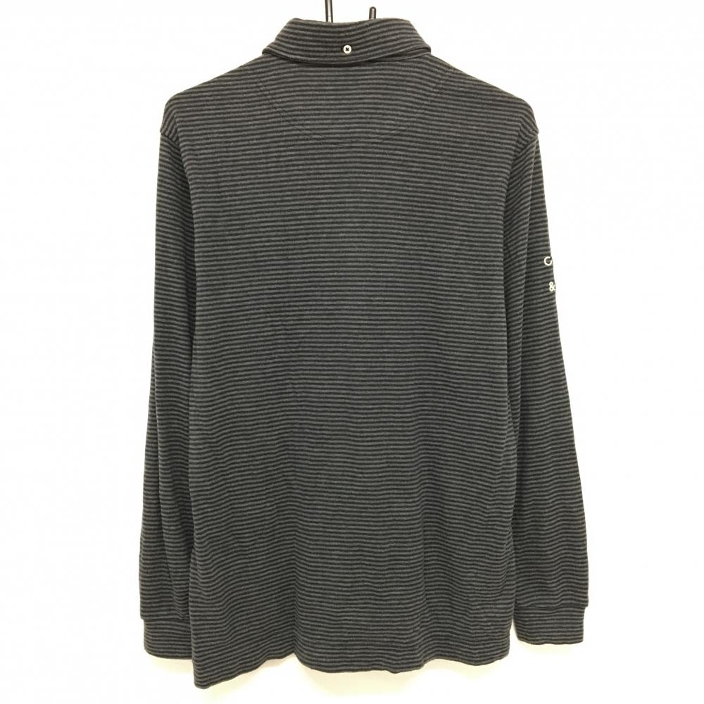 カッターアンドバック 長袖ポロシャツ グレー×ダークグレー 細ボーダー ボタンダウン メンズ L ゴルフウェア CUTTER&BUCK
