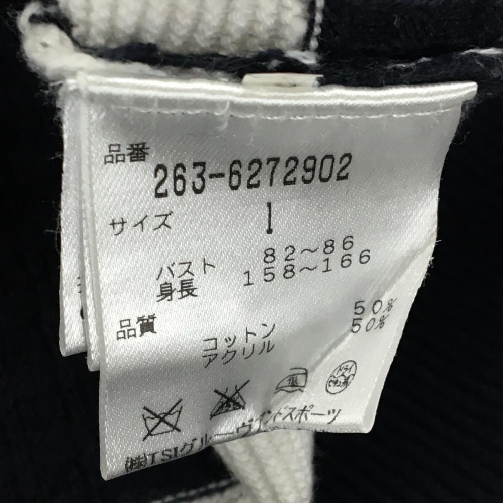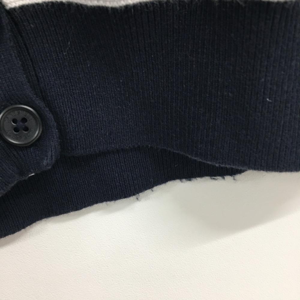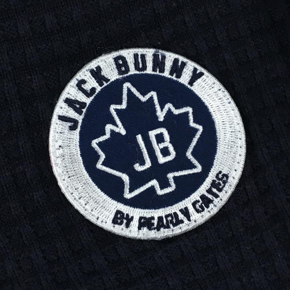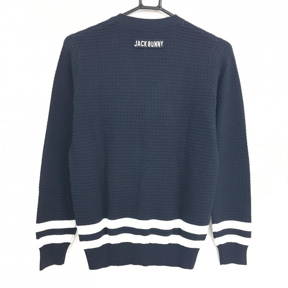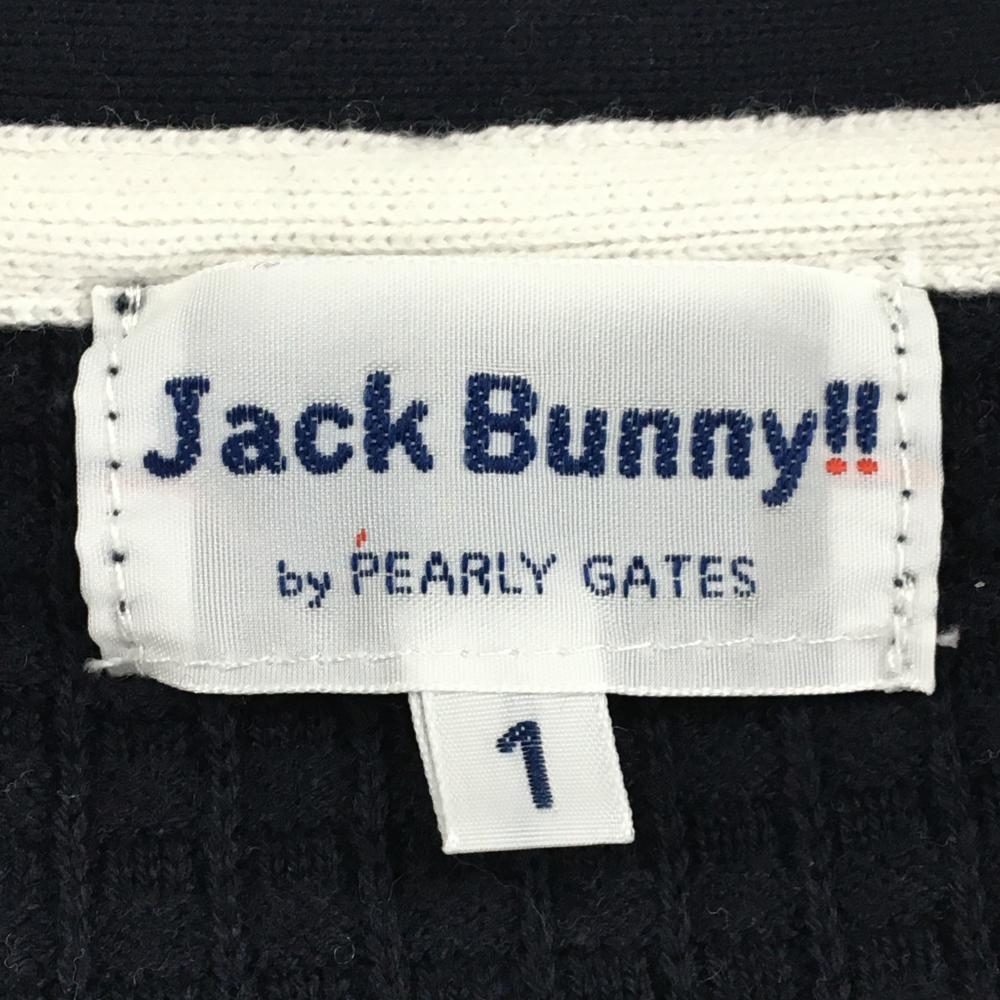 【美品】ジャックバニー ニットカーディガン ネイビー×白 凹凸編み 一部ライン アクリル混 レディース 1(M) ゴルフウェア Jack Bunny