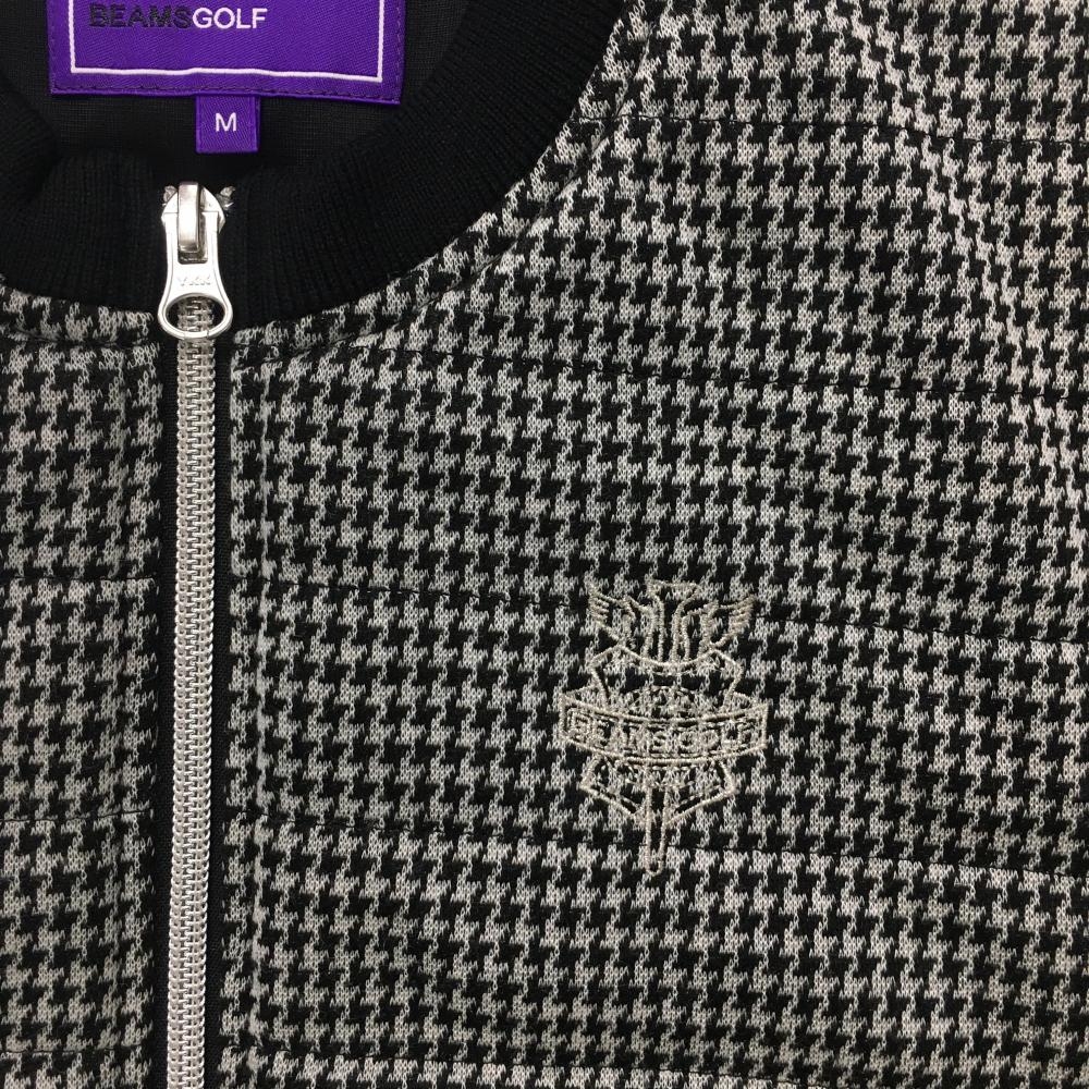 【超美品】ビームスゴルフ 半袖中綿ニットジャケット 白×黒 千鳥格子 蓄熱裏地 レディース M ゴルフウェア BEAMS GOLF