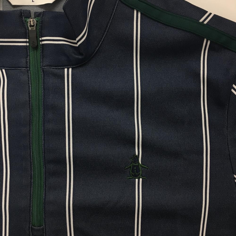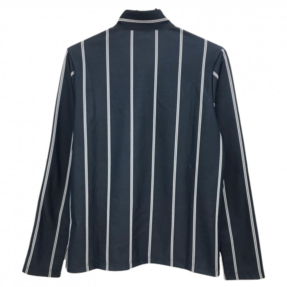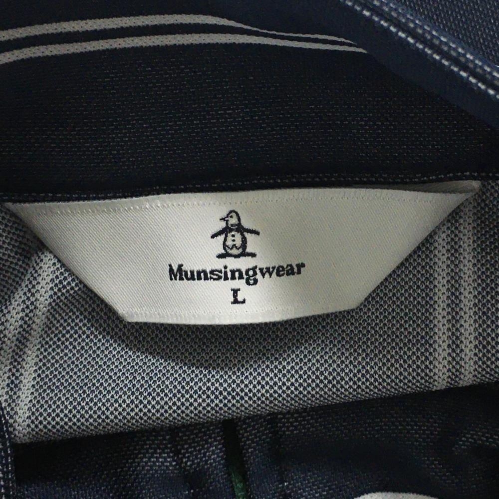 【美品】マンシングウェア 長袖ハイネックシャツ ネイビー×白 ストライプ レディース L ゴルフウェア 2023年モデル Munsingwear