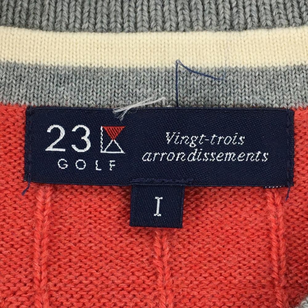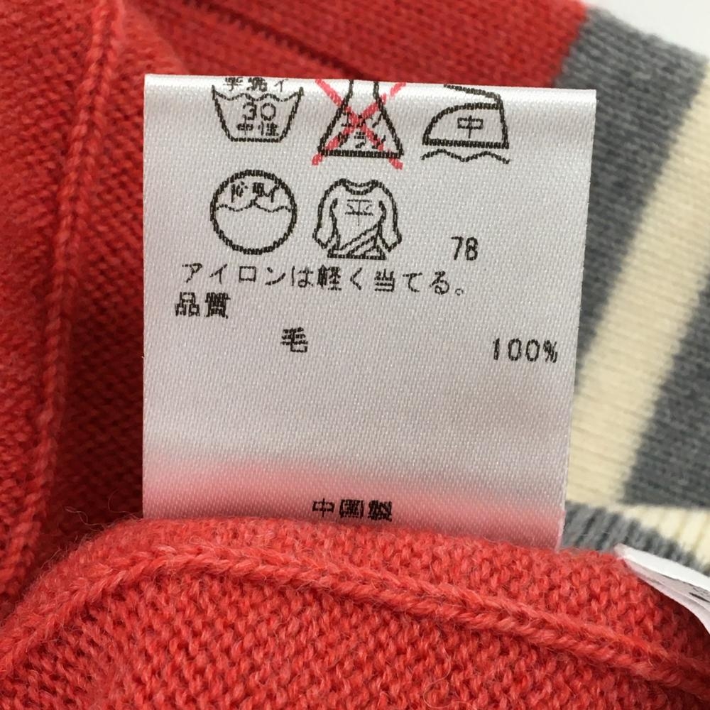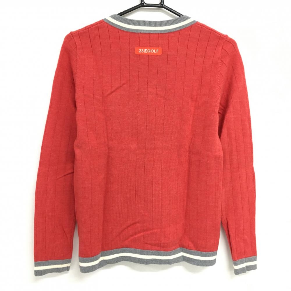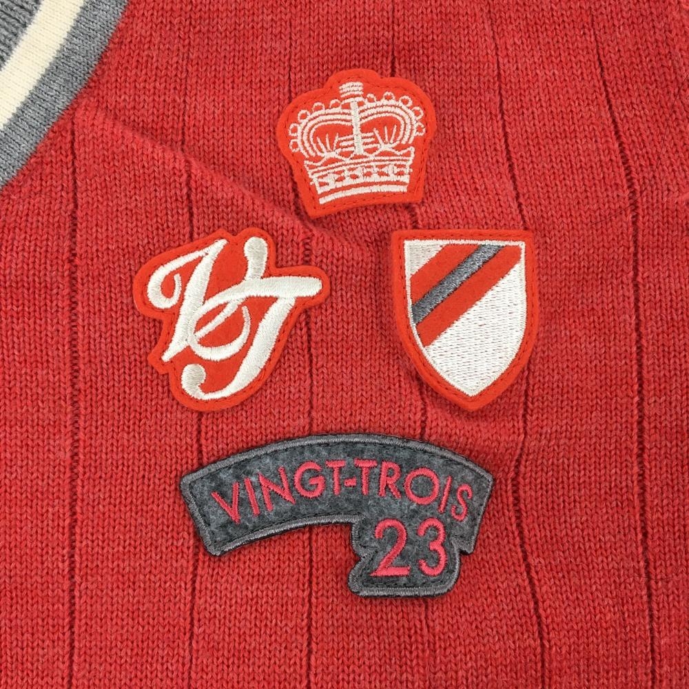 【超美品】23区ゴルフ セーター レッド×グレー Vネック 複数ワッペン ネック・袖口ライン ウール100% レディース I(M) ゴルフウェア 23区
