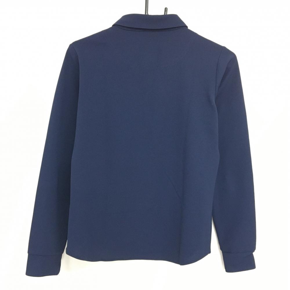 【美品】ルコックゴルフ 長袖ポロシャツ ネイビー×白 襟ロゴ 胸ポケット付 レディース L ゴルフウェア le coq sportif