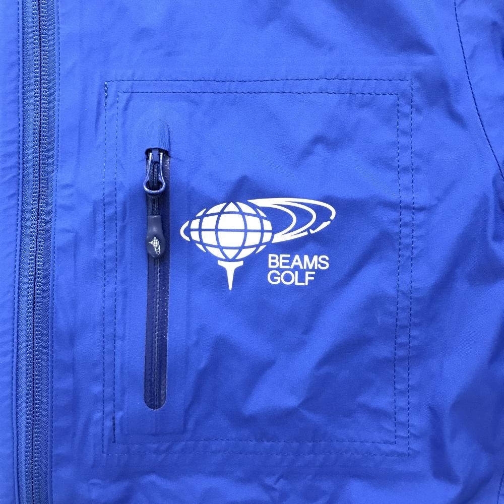 【超美品】ビームスゴルフ レインジャケット ブルー ロゴ白 収納袋 レディース M ゴルフウェア BEAMS GOLF