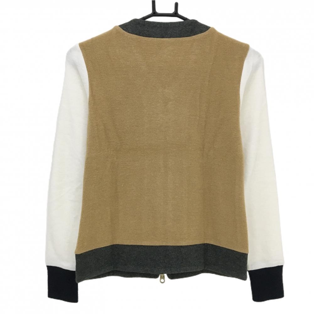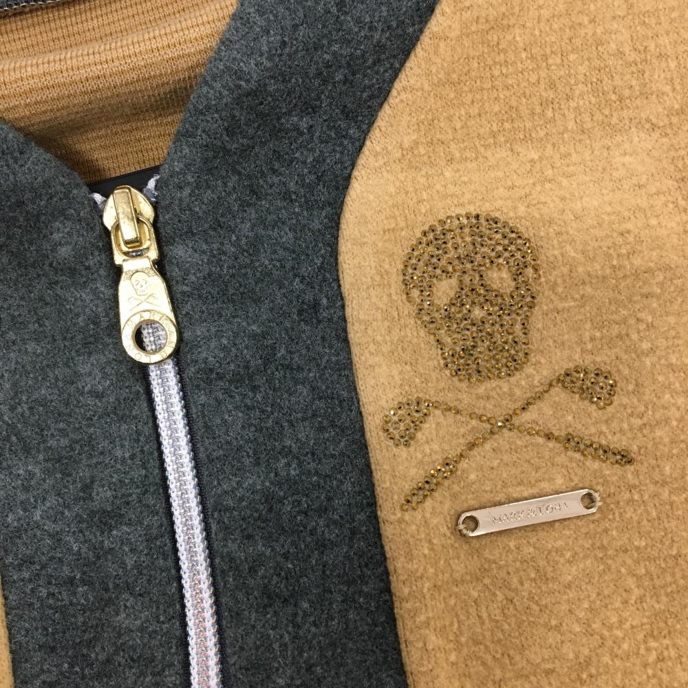 【美品】マークアンドロナ ジャケット ベージュ×白 ラインストーンスカル 起毛素材 切替 レディース S ゴルフウェア MARK&LONA