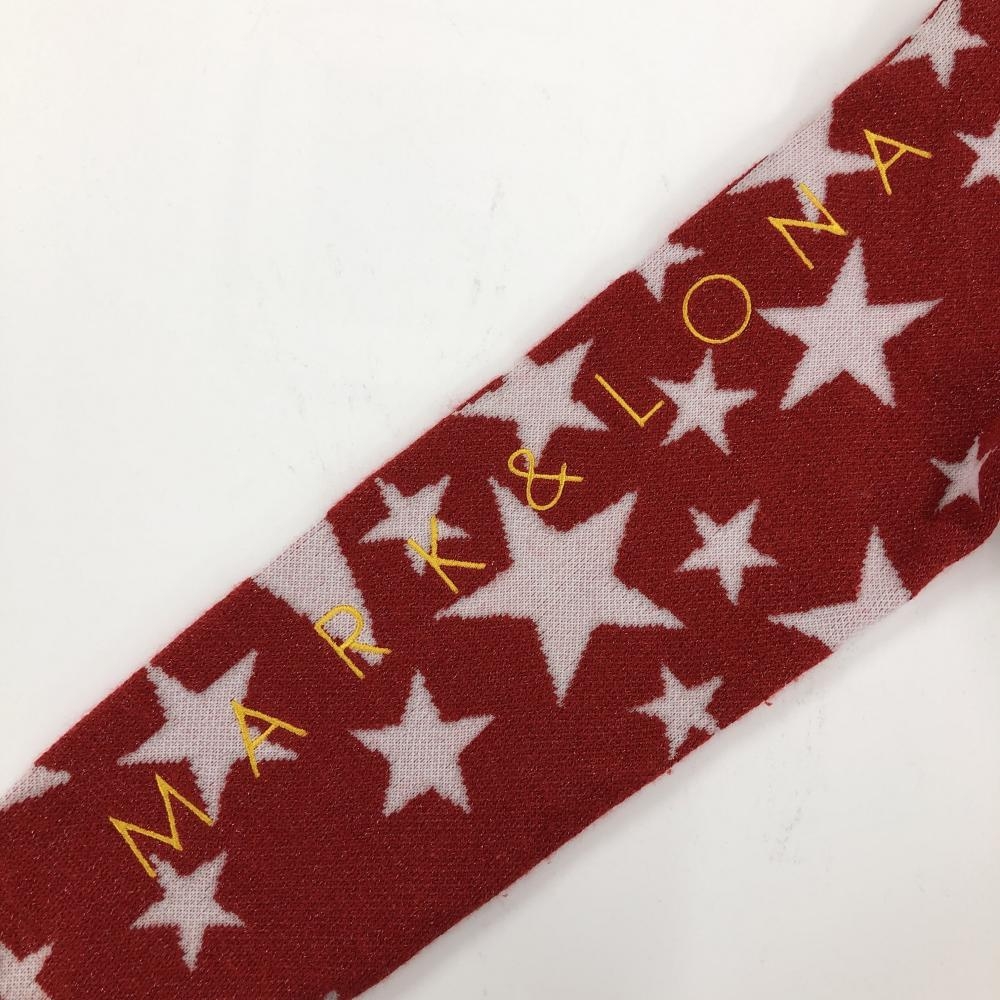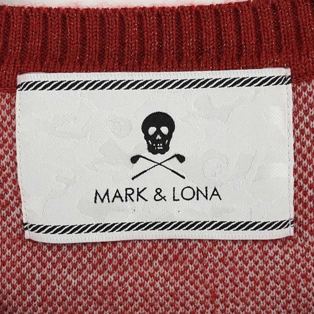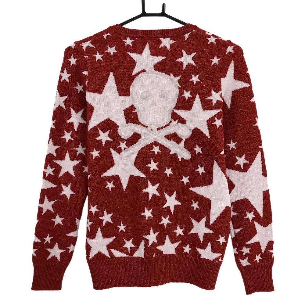 【超美品】マークアンドロナ セーター レッド×白 星総柄 背面ビッグスカル ウール混 ニット レディース S ゴルフウェア MARK&LONA