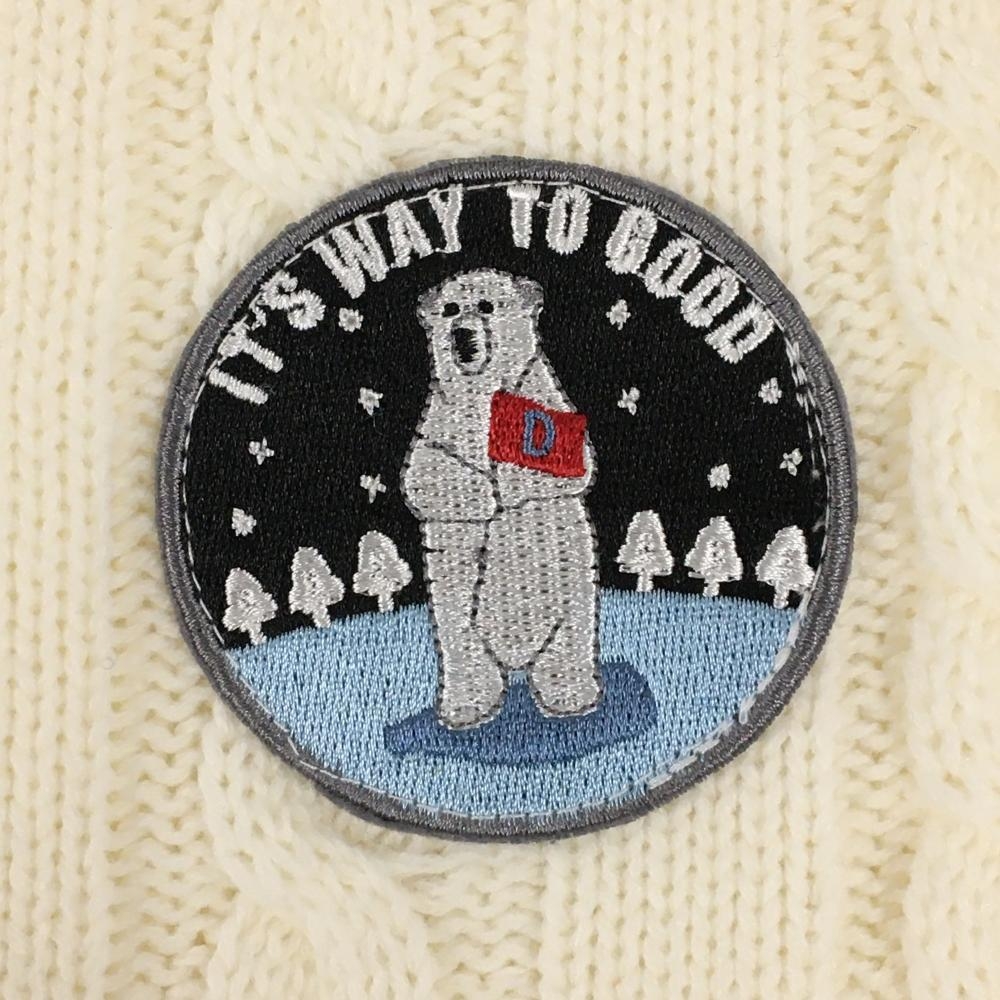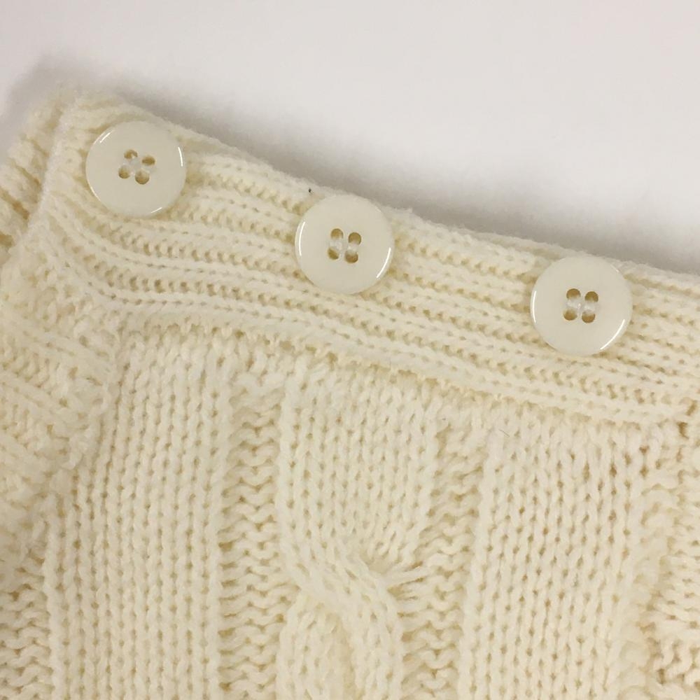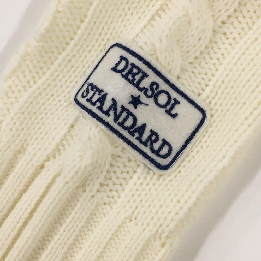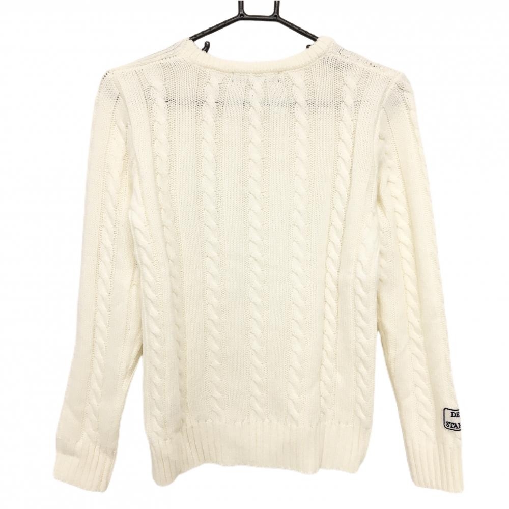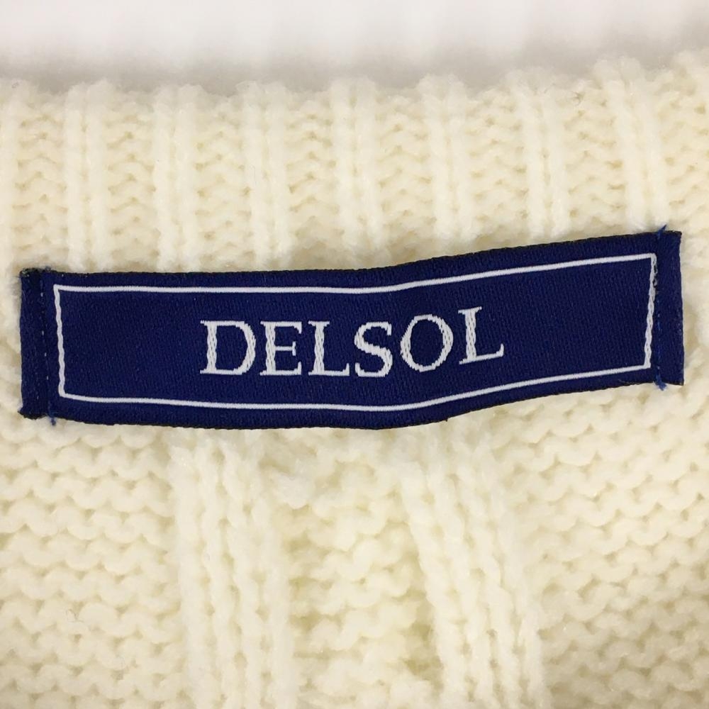 【超美品】デルソル セーター 白 ケーブル編み 刺しゅうワッペン クマ 飾りボタン レディース M ゴルフウェア DELSOL