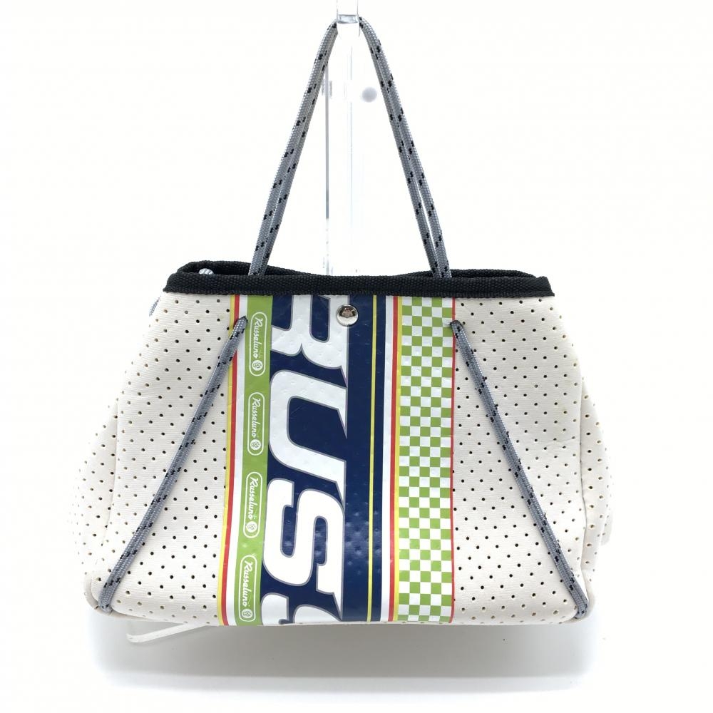 【美品】ラッセルノ カートバッグ ライトベージュ×ネイビー パンチング素材 ポーチ取外し可 ゴルフ RUSSELUNO