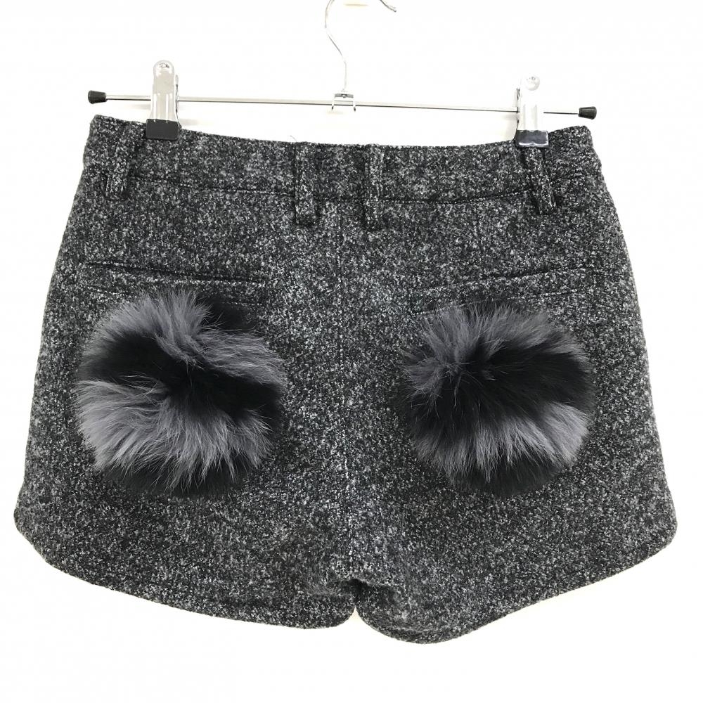 【超美品】マークアンドロナ ショートパンツ 黒×グレー シルバーラメ 裏起毛 ウール混 レディース 38(M) ゴルフウェア MARK&LONA