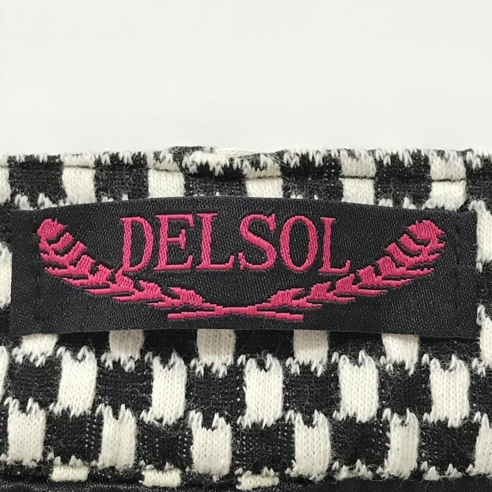【超美品】デルソル ショートパンツ 白×黒 ブロックチェック ニット ロゴ刺しゅう 裏地付 レディース M ゴルフウェア DELSOL