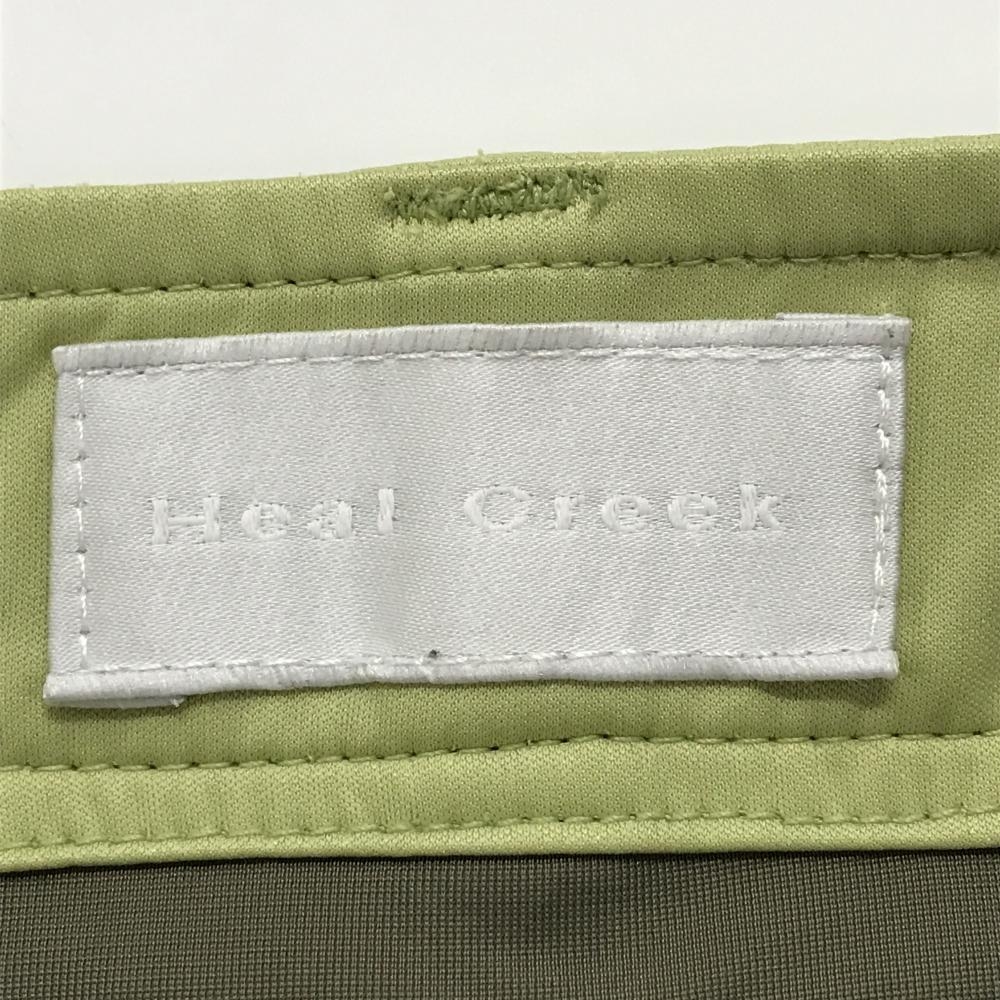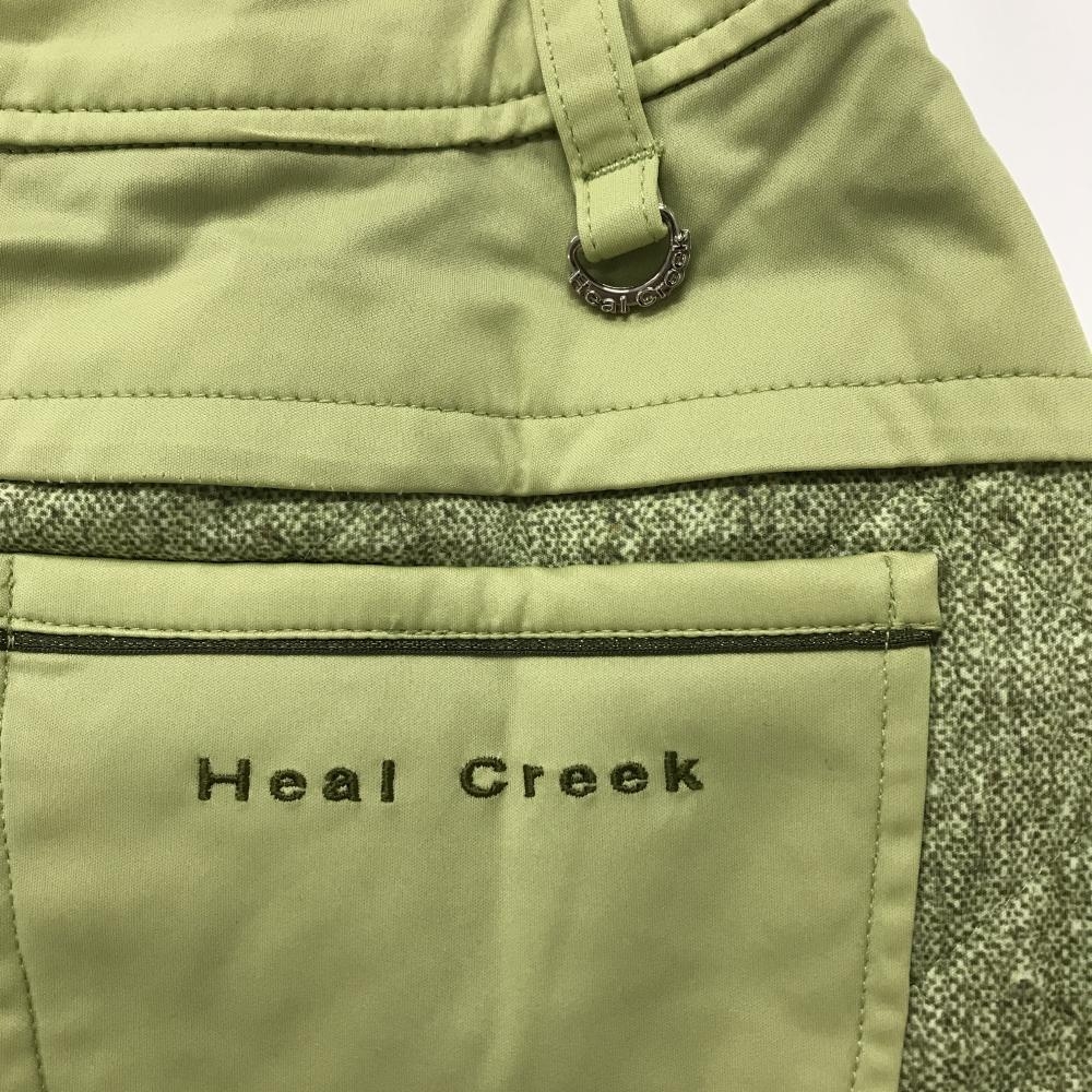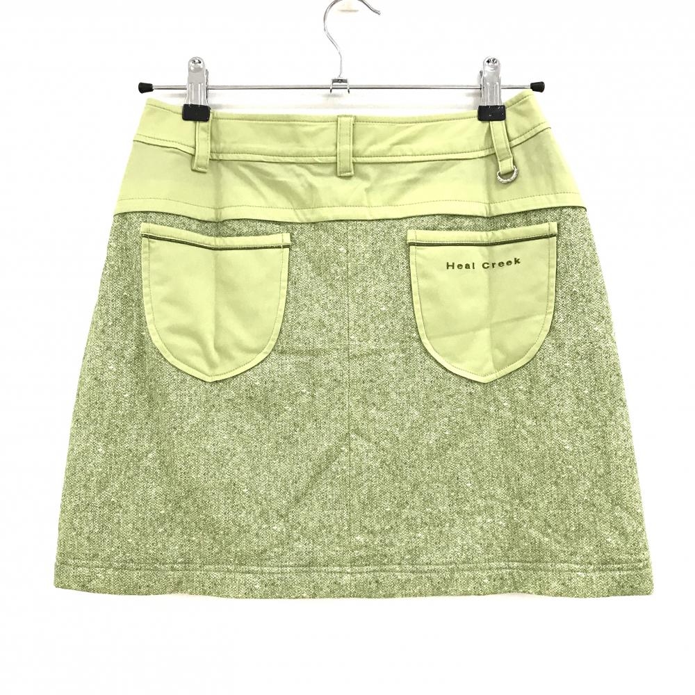【超美品】ヒールクリーク 中綿スカート 杢ライトグリーン ロゴ刺しゅう レディース 38(S) ゴルフウェア Heal Creek