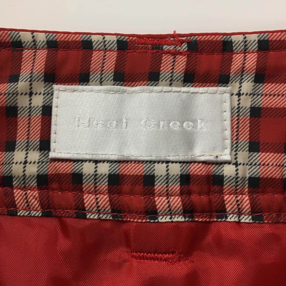 【超美品】ヒールクリーク 中綿スカート レッド ポケット口チェック レディース 38(S) ゴルフウェア Heal Creek