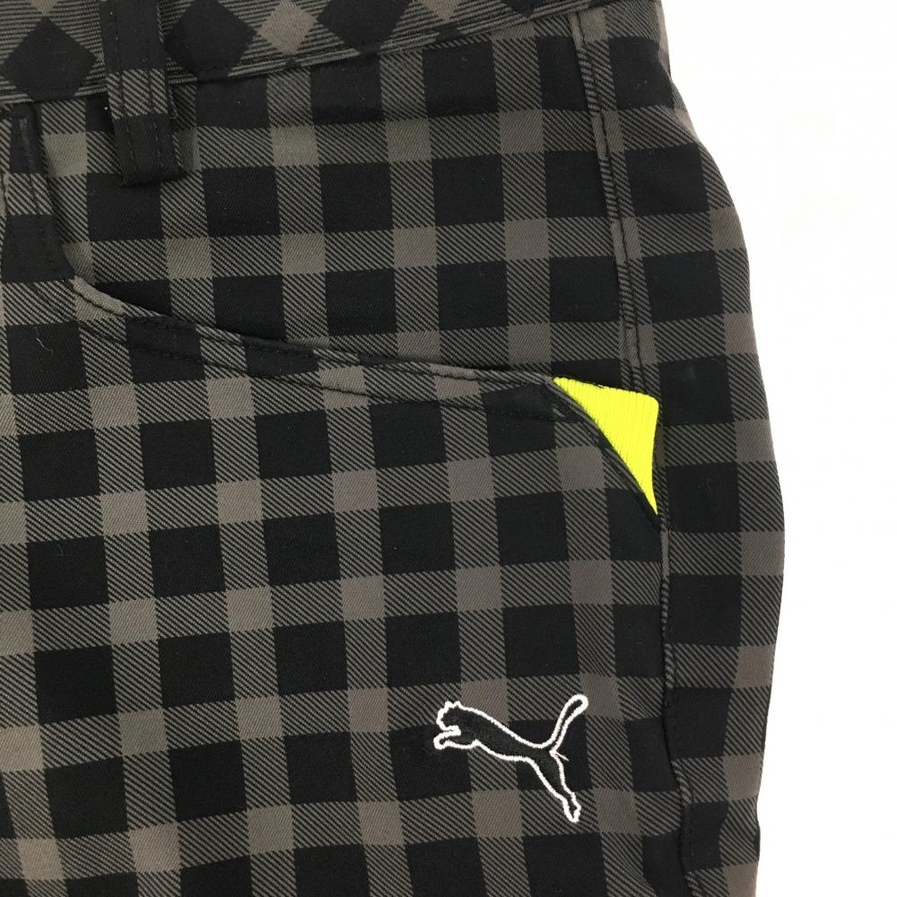 【超美品】プーマ パンツ カーキ×黒 チェック ロゴ刺しゅう ポケット口一部ゴム メンズ 79 ゴルフウェア PUMA