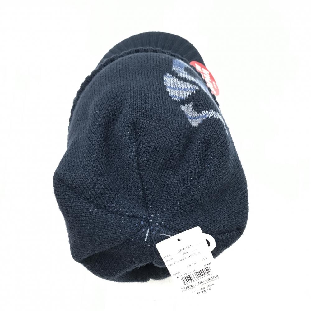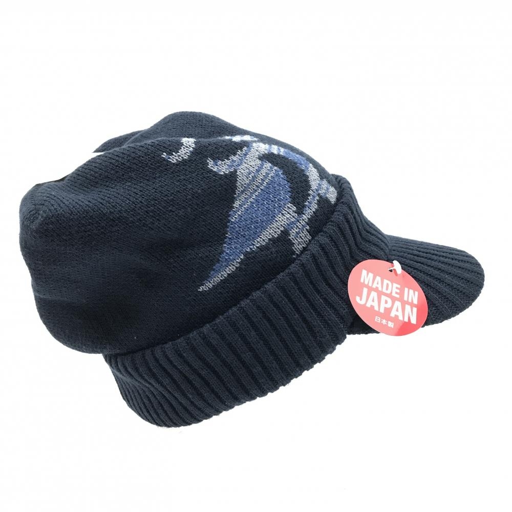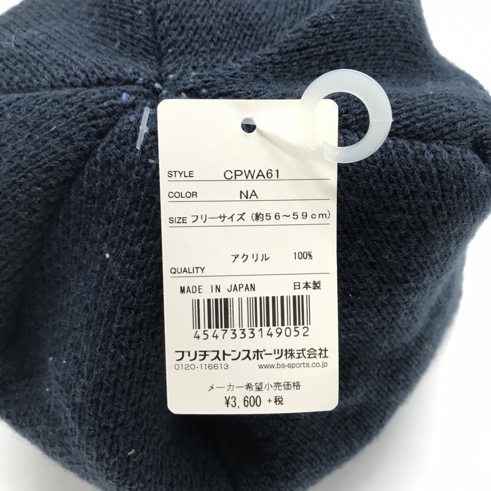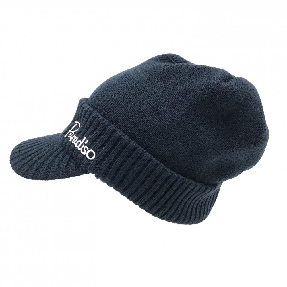 【新品】パラディーゾ つば付きニット帽 ネイビー×白 ロゴ刺しゅう 日本製 フリーサイズ(約56-59cm) ゴルフウェア Paradiso