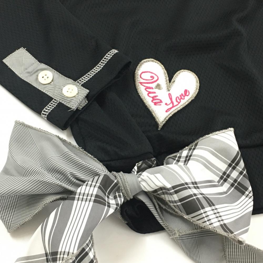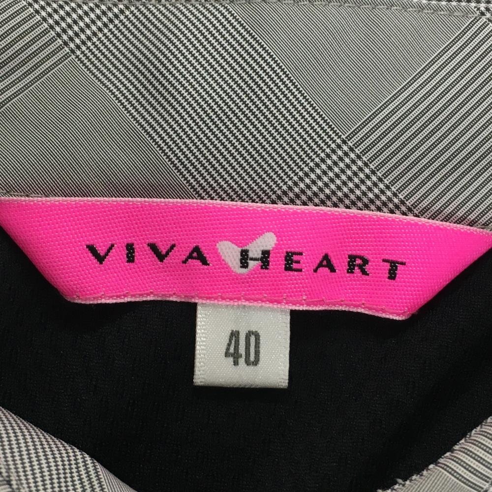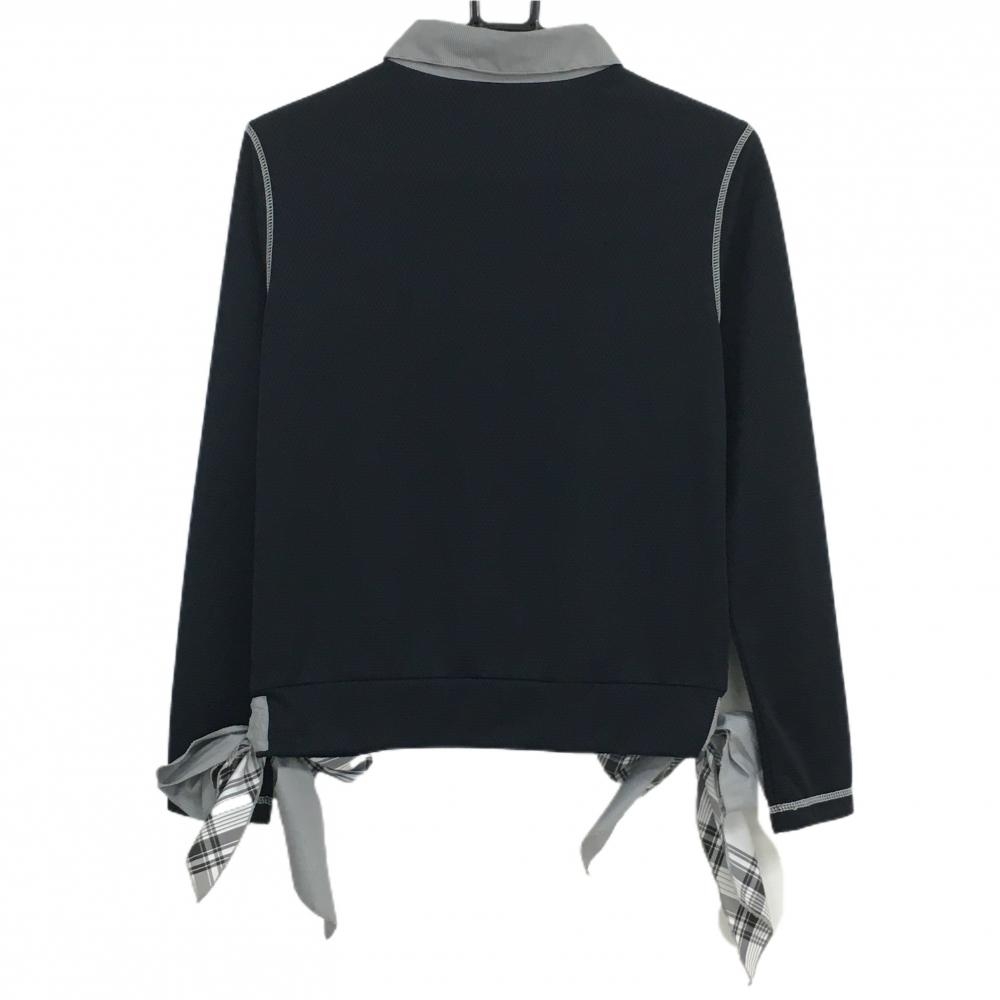 【美品】ビバハート 長袖ポロシャツ 黒×グレー メッシュ調 一部チェック 裾リボン レディース 40(M) ゴルフウェア VIVA HEART