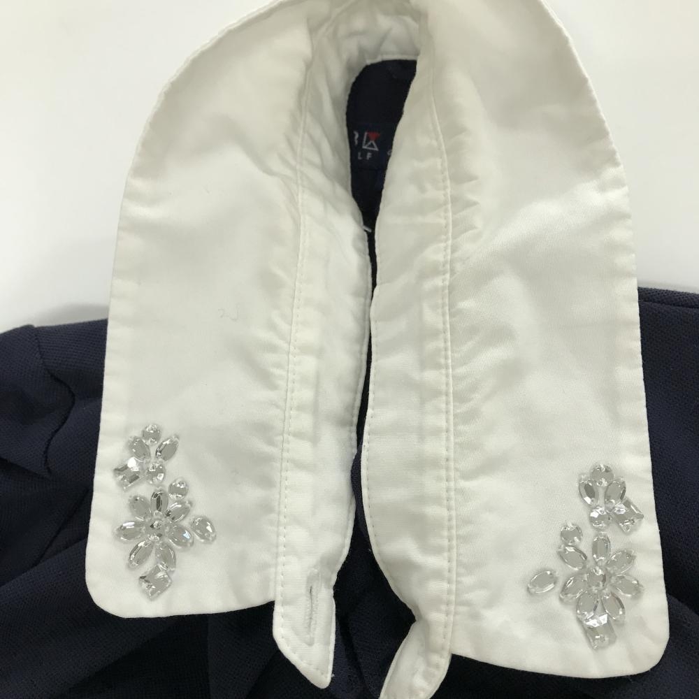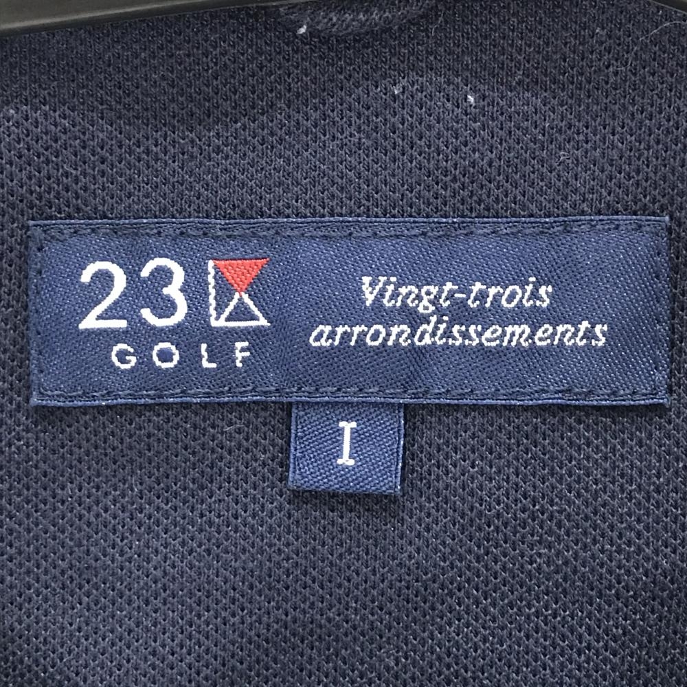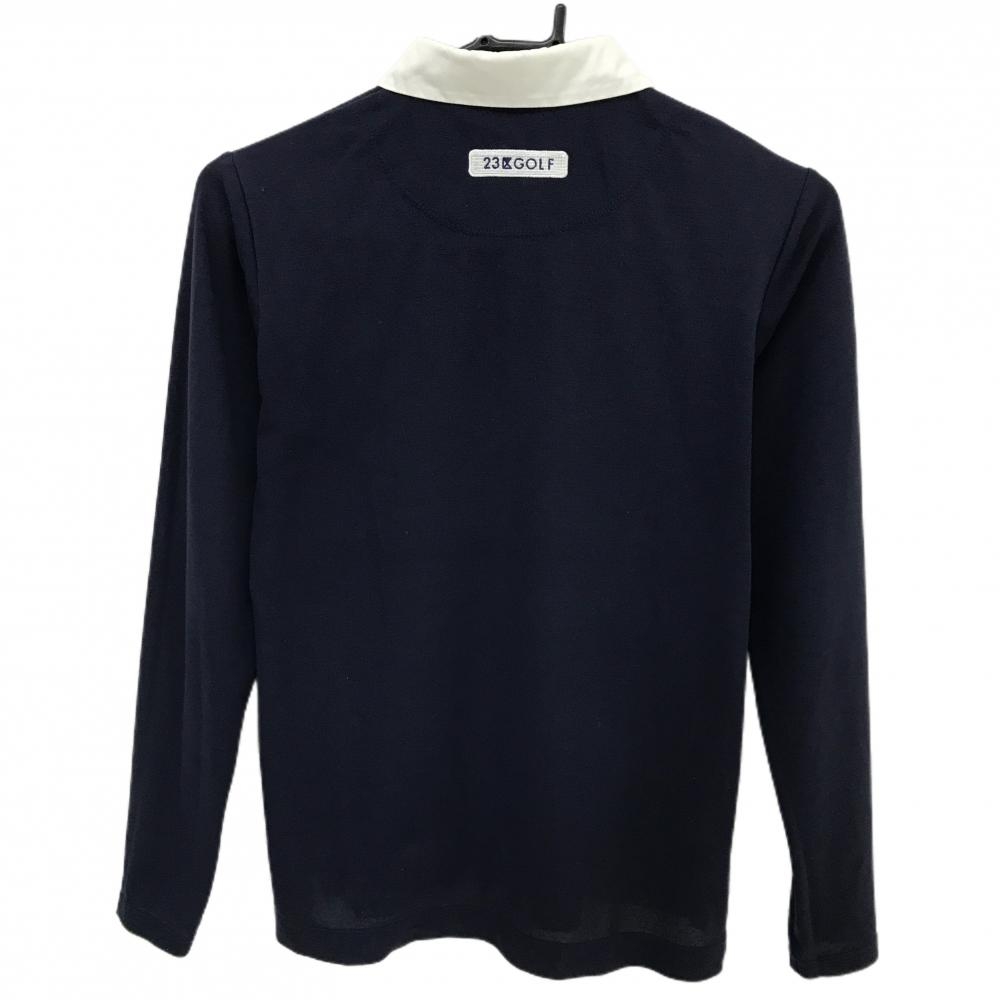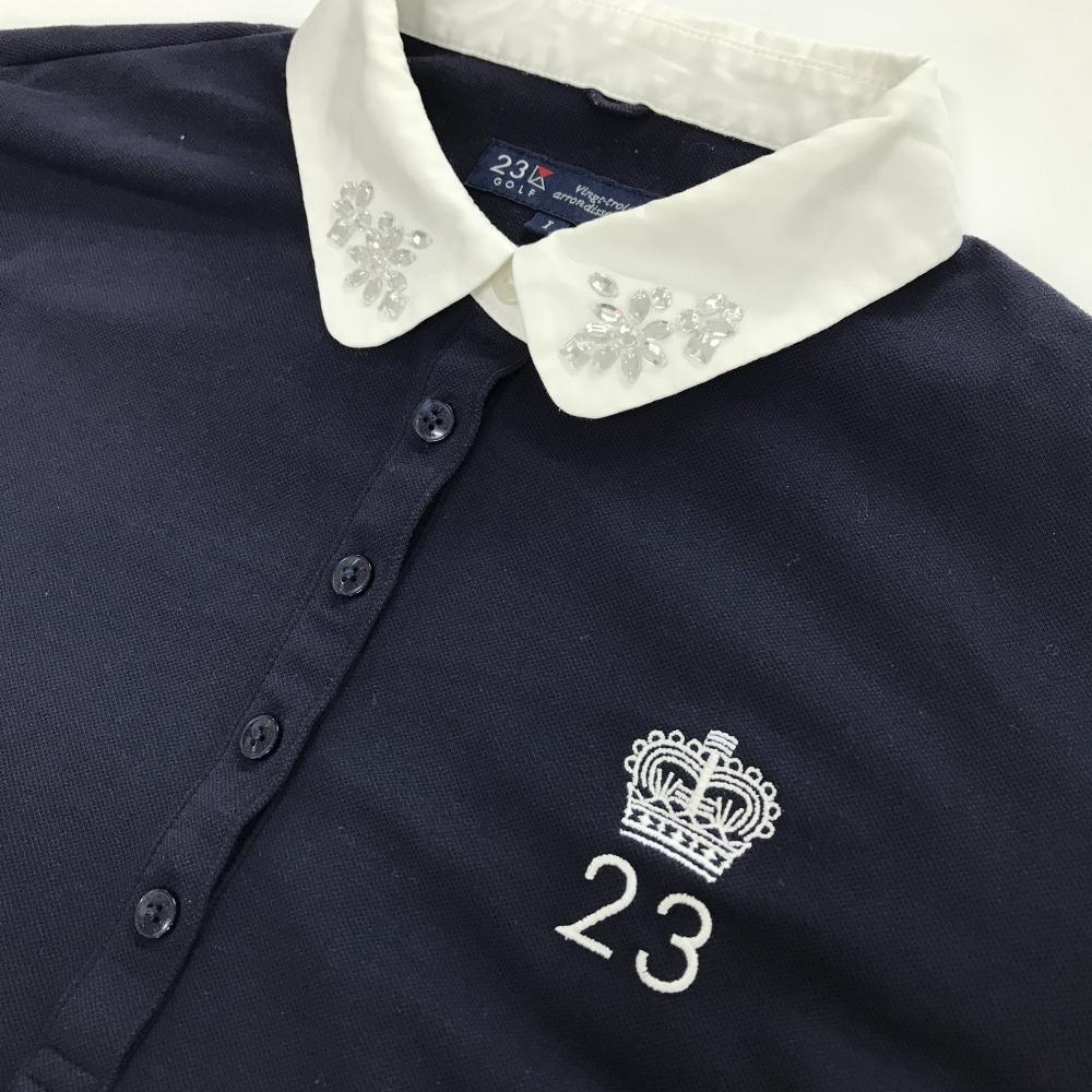23区ゴルフ 長袖ポロシャツ ネイビー×白 襟ビジュー付 ロゴ刺しゅう レディース I(M) ゴルフウェア 23区