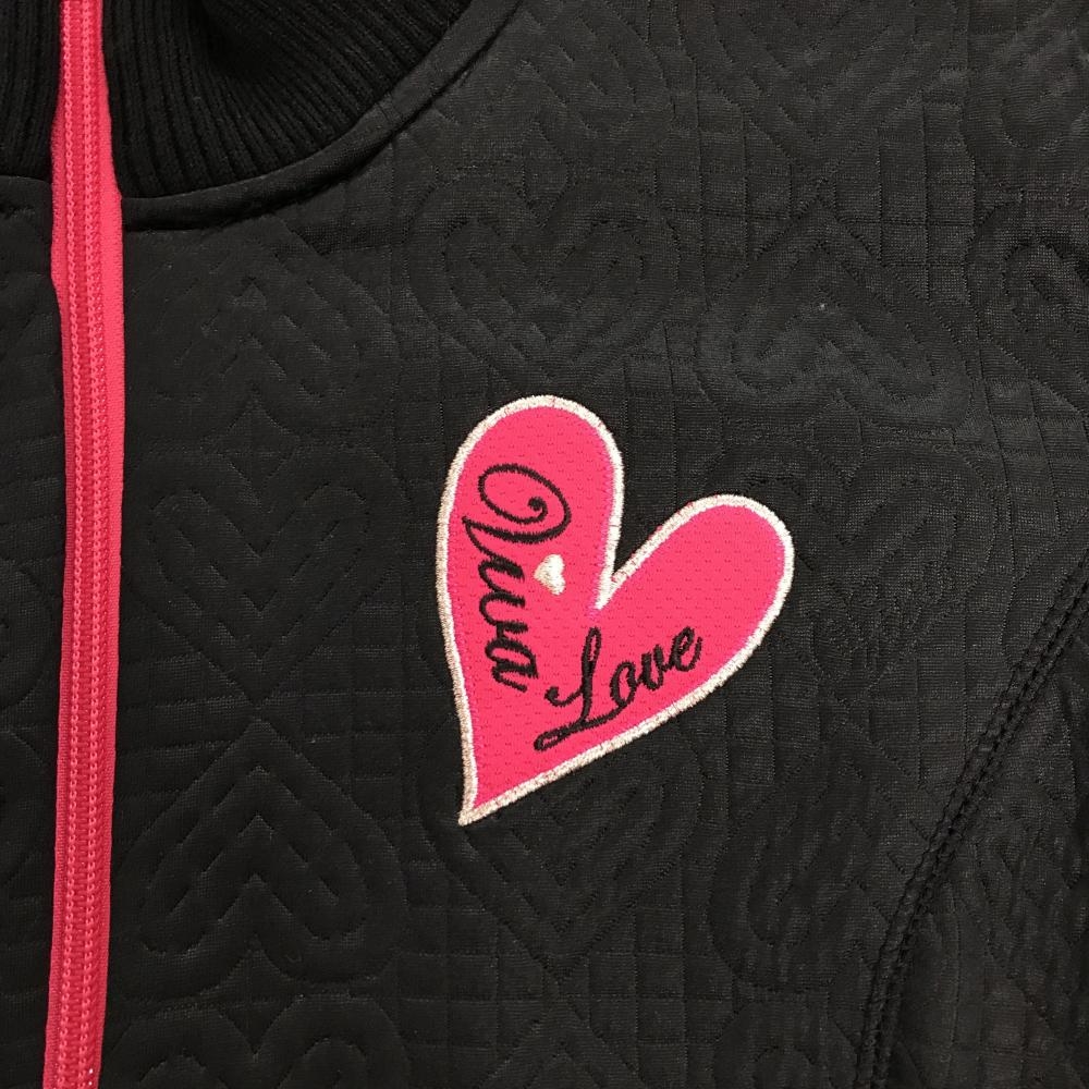 【超美品】ビバハート ジャケット 黒×ピンク 凸凹地模様 ハート 胸元ロゴ アクリル100% レディース 42(L) ゴルフウェア VIVA HEART