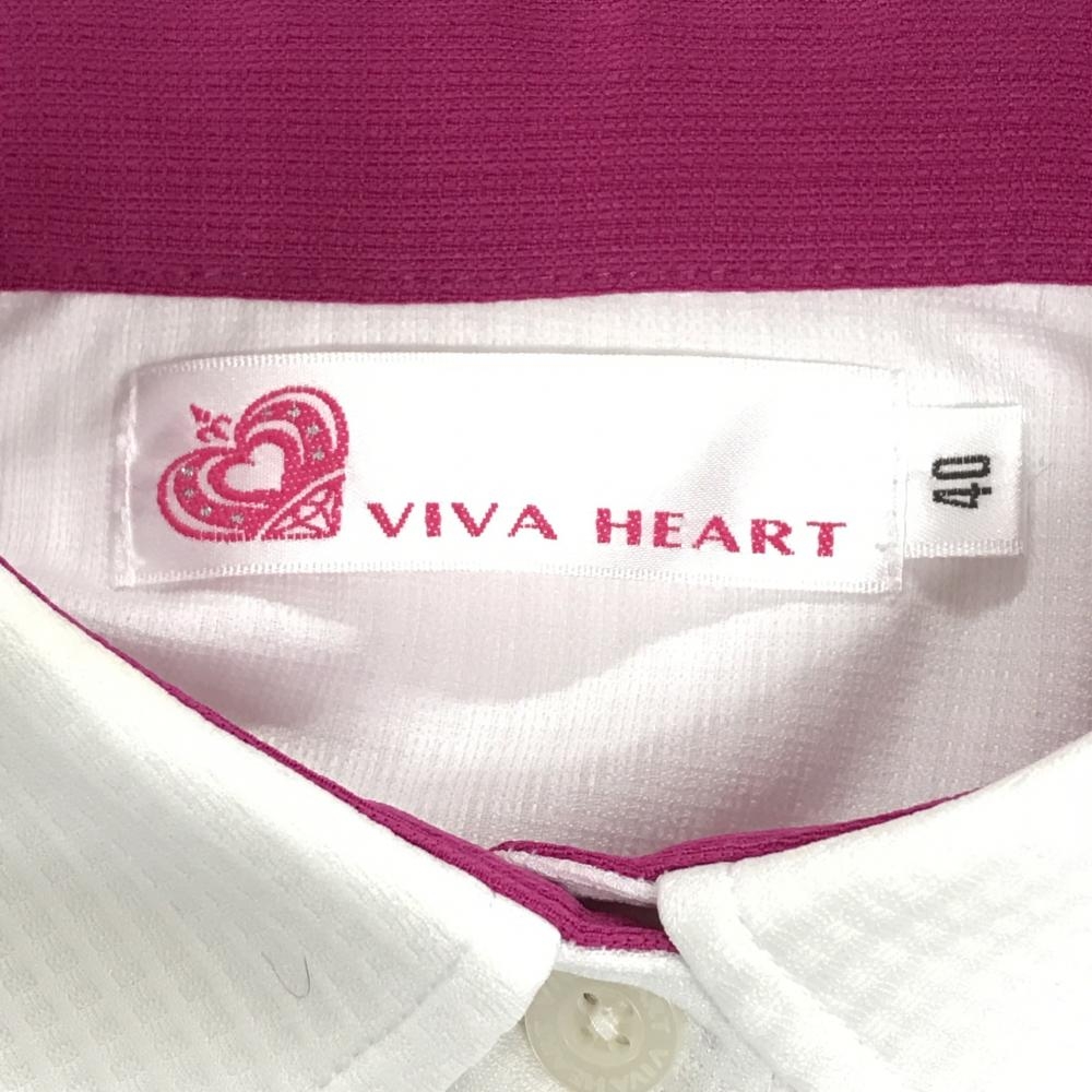 ビバハート 長袖ポロシャツ 白 襟裏・袖口裏ピンク ロゴ刺しゅう 胸ポケット レディース 40(M) ゴルフウェア VIVA HEART