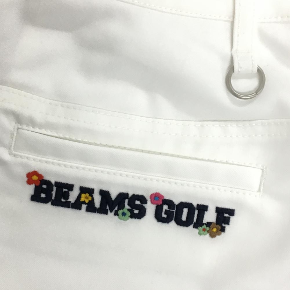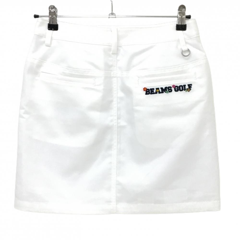 【超美品】ビームスゴルフ スカート 白 無地 裾花刺しゅう 裏地あり レディース M ゴルフウェア BEAMS GOLF