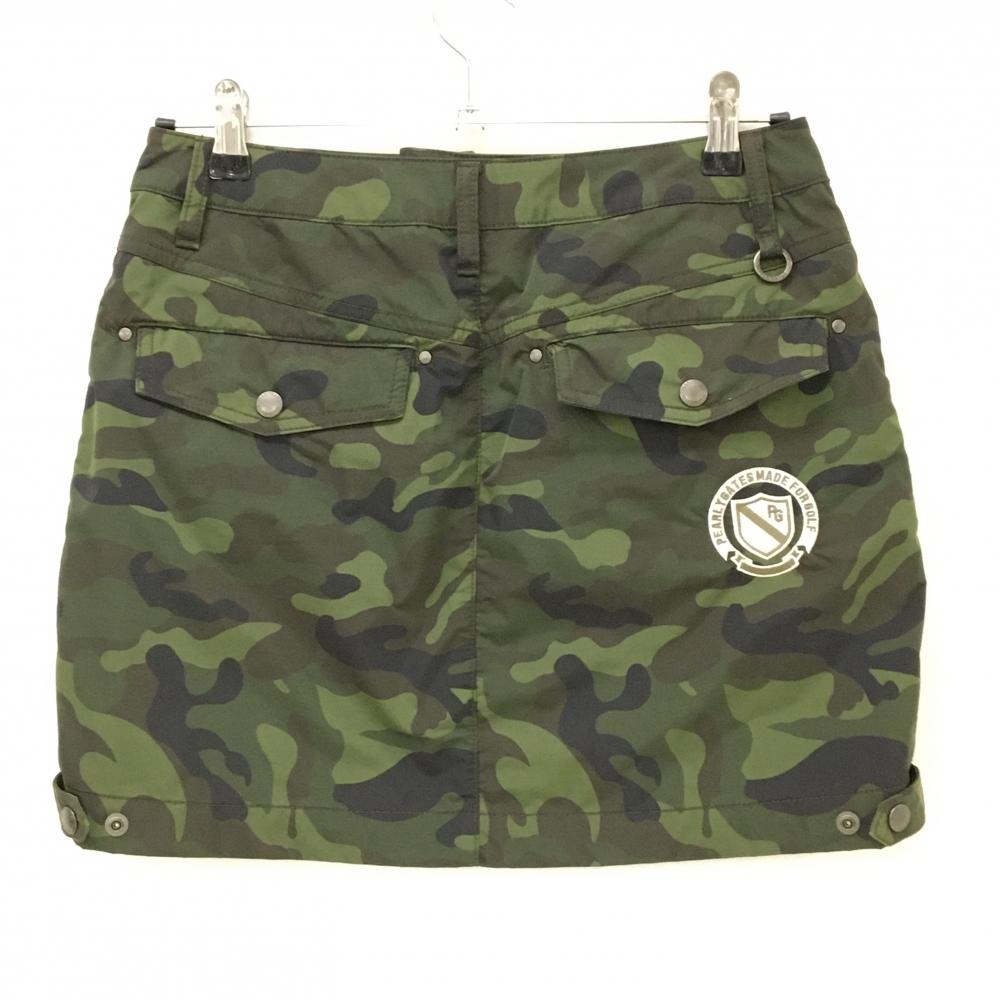 【超美品】パーリーゲイツ スカート カーキ×黒 迷彩 カモフラ 裏地メッシュ ティー装着可 レディース 1(M) ゴルフウェア PEARLY GATES